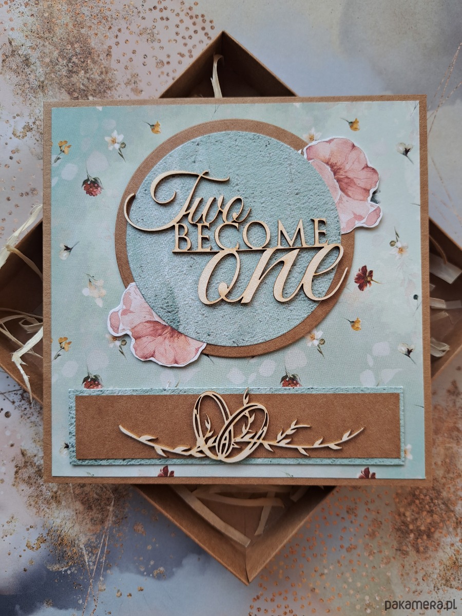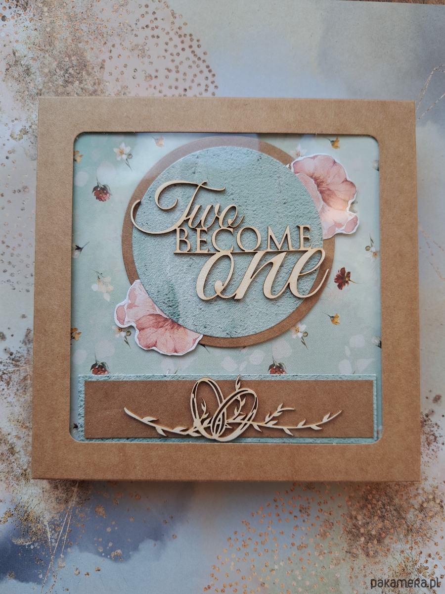 - kartka zdobiona napisem "Two become one"