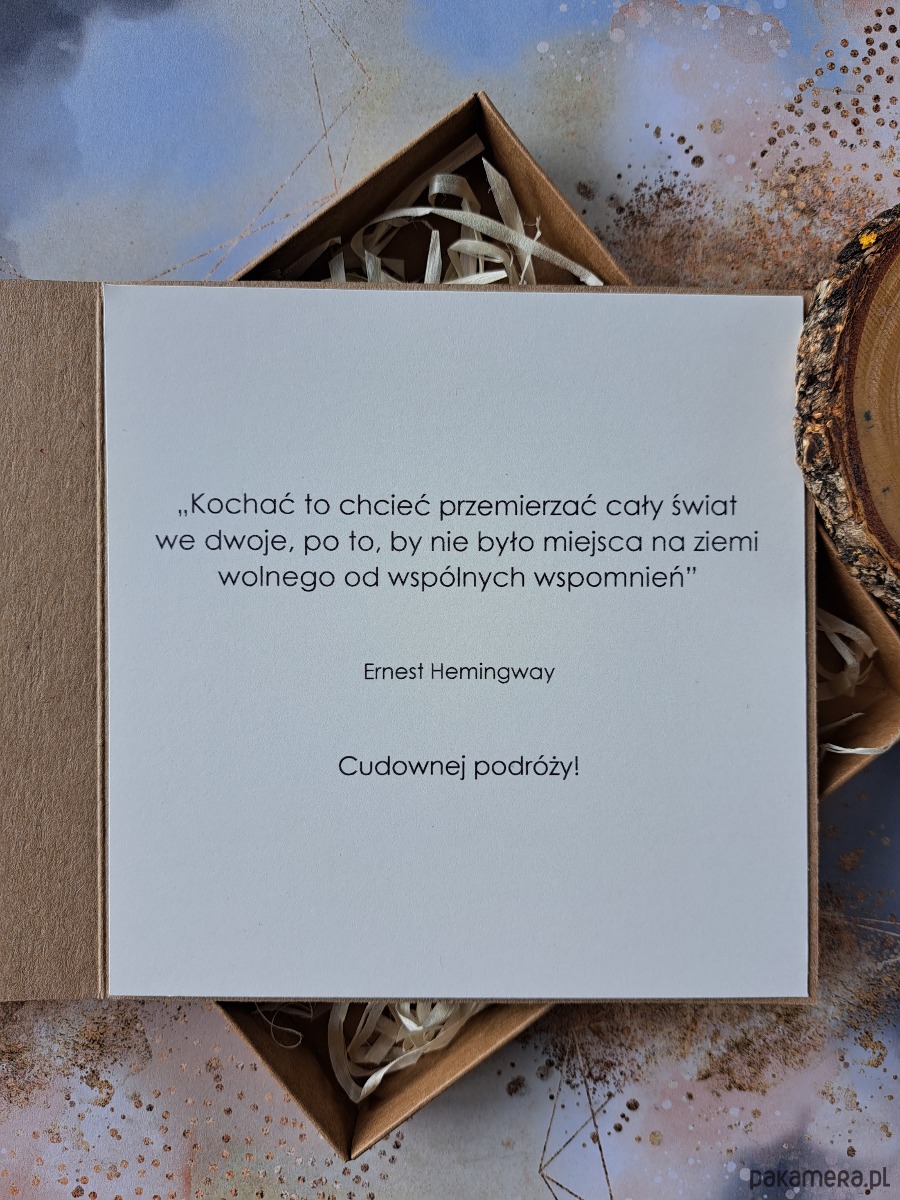 - w środku wklejona kartka z cytatem E.Hemingway'a