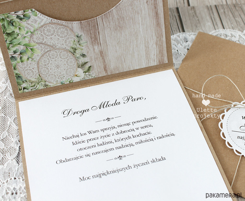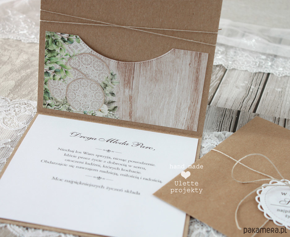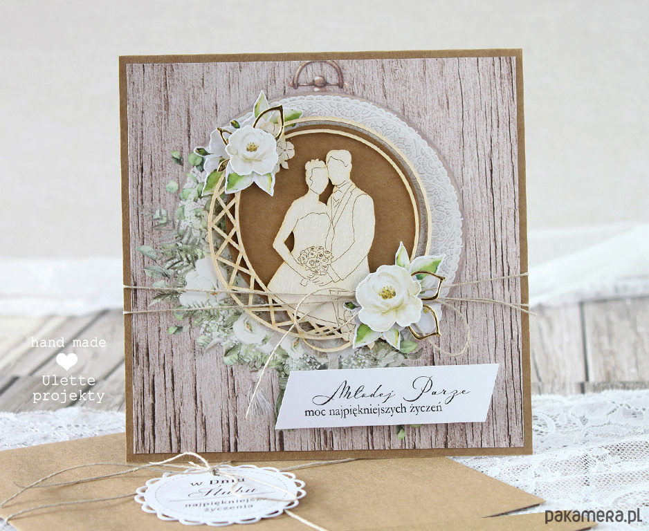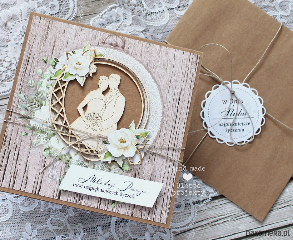 Piękna, niepowtarzalna rustykalna kartka z okazji ślubu. Kartka jest w całości wykonana ręcznie.