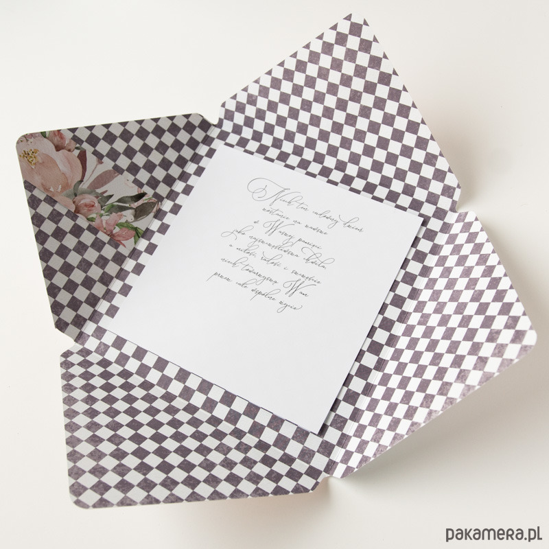 Koperta po złożeniu ma wymiary ok. 17,5x17,5cm, więc jest sporo większa niż standardowe kartki z życzeniami.