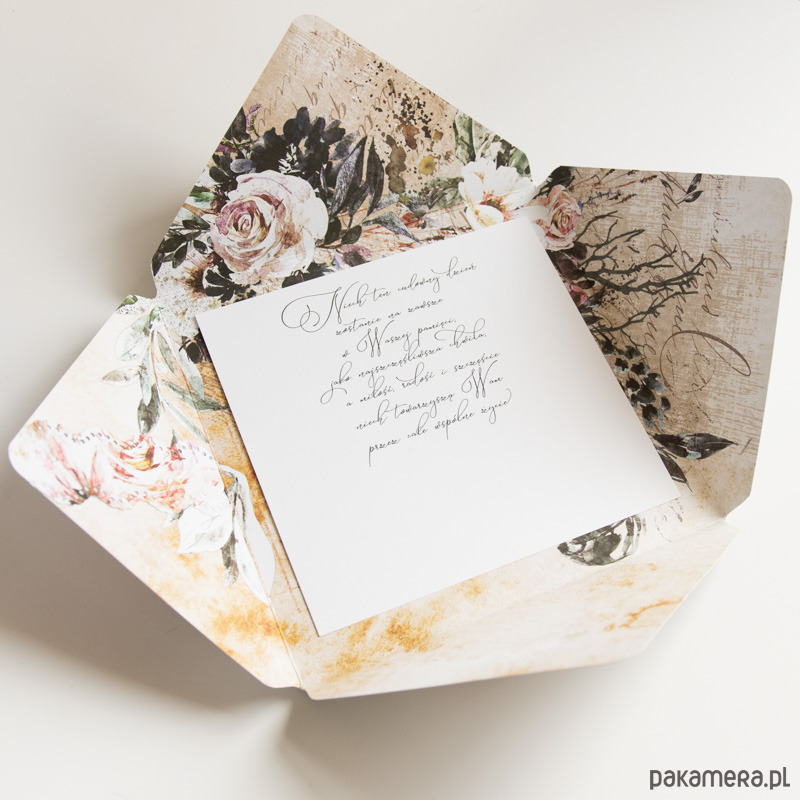 Koperta po złożeniu ma wymiary ok. 17,5x17,5cm, więc jest sporo większa niż standardowe kartki z życzeniami.