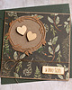 wykonana na bazie grubego kartonu EKO-kraft (100% makulatury), ozdobiona wzorzystym kartonem, tekturą falistą, tekturowym wianuszkiem, drewnianymi sercami i grawerowaną tekturką. kartka przewiązana jutowym sznurkiem.
