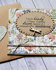 cudna kartka wykonana na bazie grubego kartonu EKO-kraft (100% makulatury), ozdobiona wzorzystym papierem (z efektem postarzania), elementami przestrzennymi i stemplowanym napisem z drewnianą ważką. przewiązana sznurkiem jutowym.
