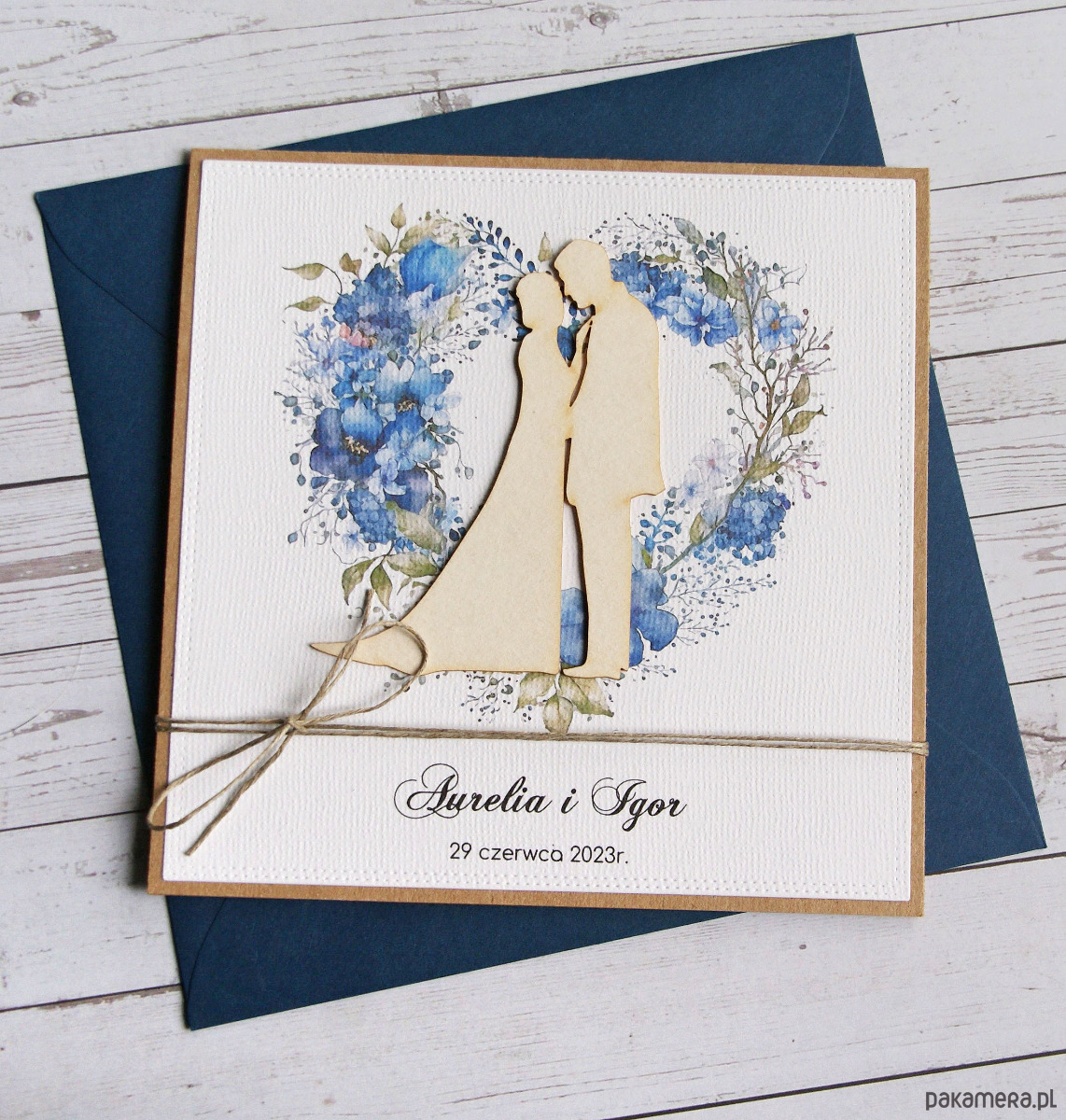 Kartka ślubna, PERSONALIZACJA, kolorowa koperta : niebieska