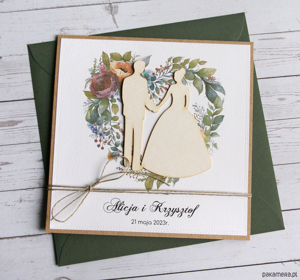 Kartka ślubna, PERSONALIZACJA, kolorowa koperta