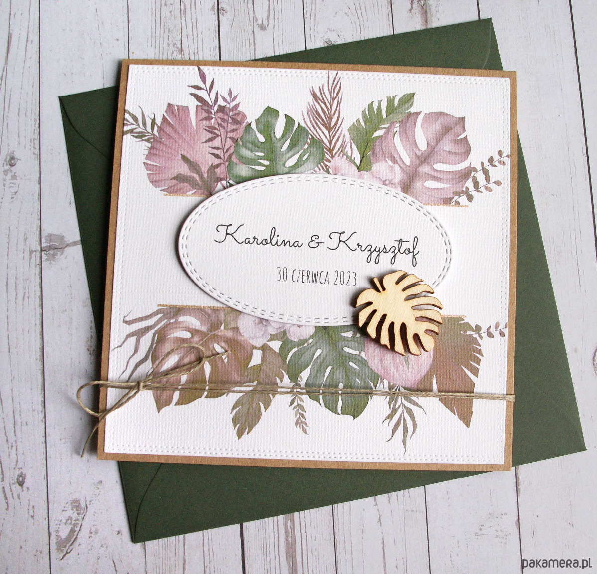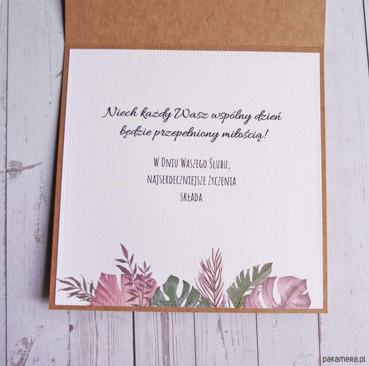 Kartka ślubna, PERSONALIZACJA : monstera BOHO