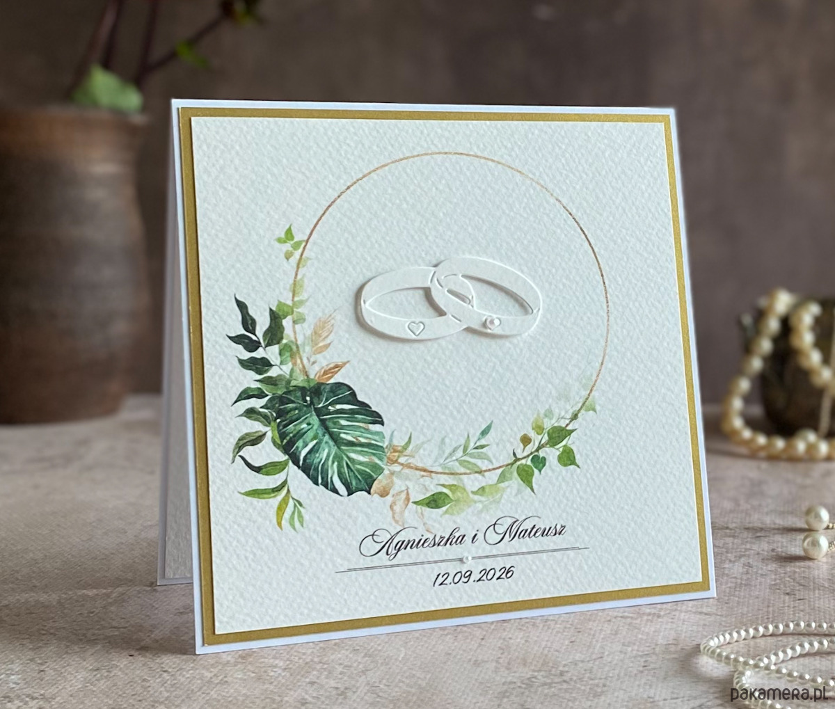 Elegancka, ręcznie wykonana kartka z okazji ślubu w ozdobnej kopercie z naszej autorskiej kolekcji WEDDING CHARM, linia ALLURE.