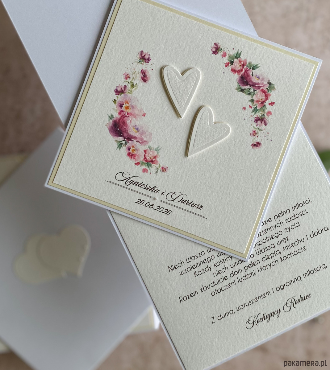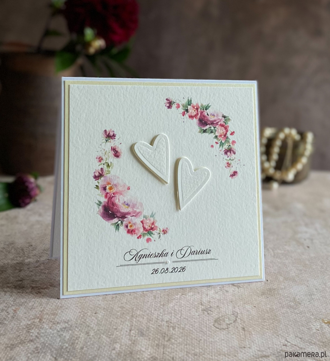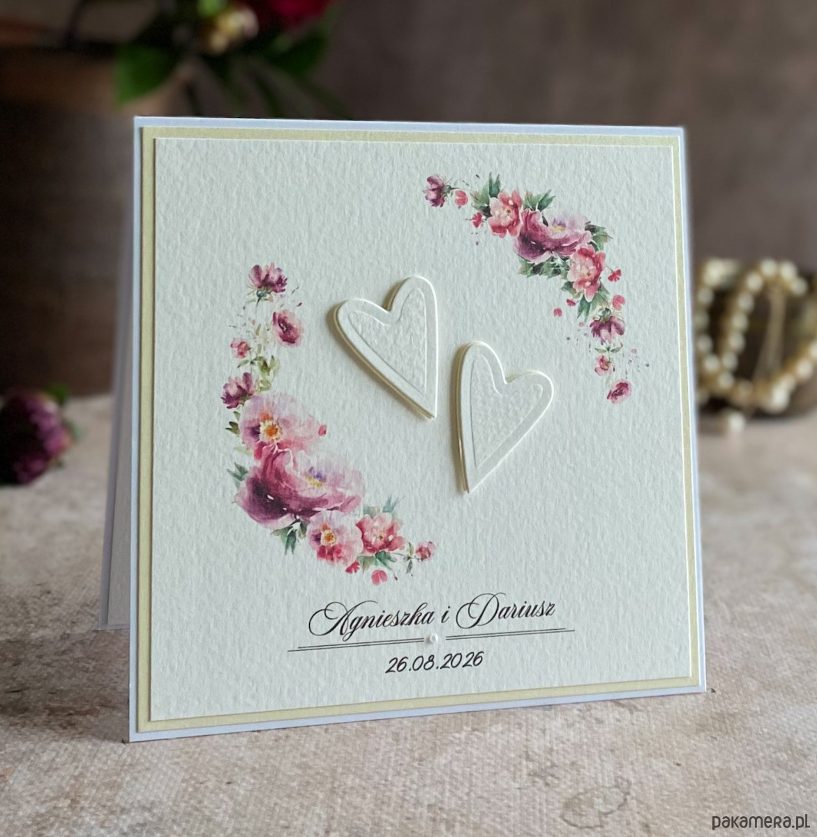 Elegancka, ręcznie wykonana kartka z okazji ślubu w ozdobnej kopercie z naszej autorskiej kolekcji WEDDING CHARM, linia PASTELLE.