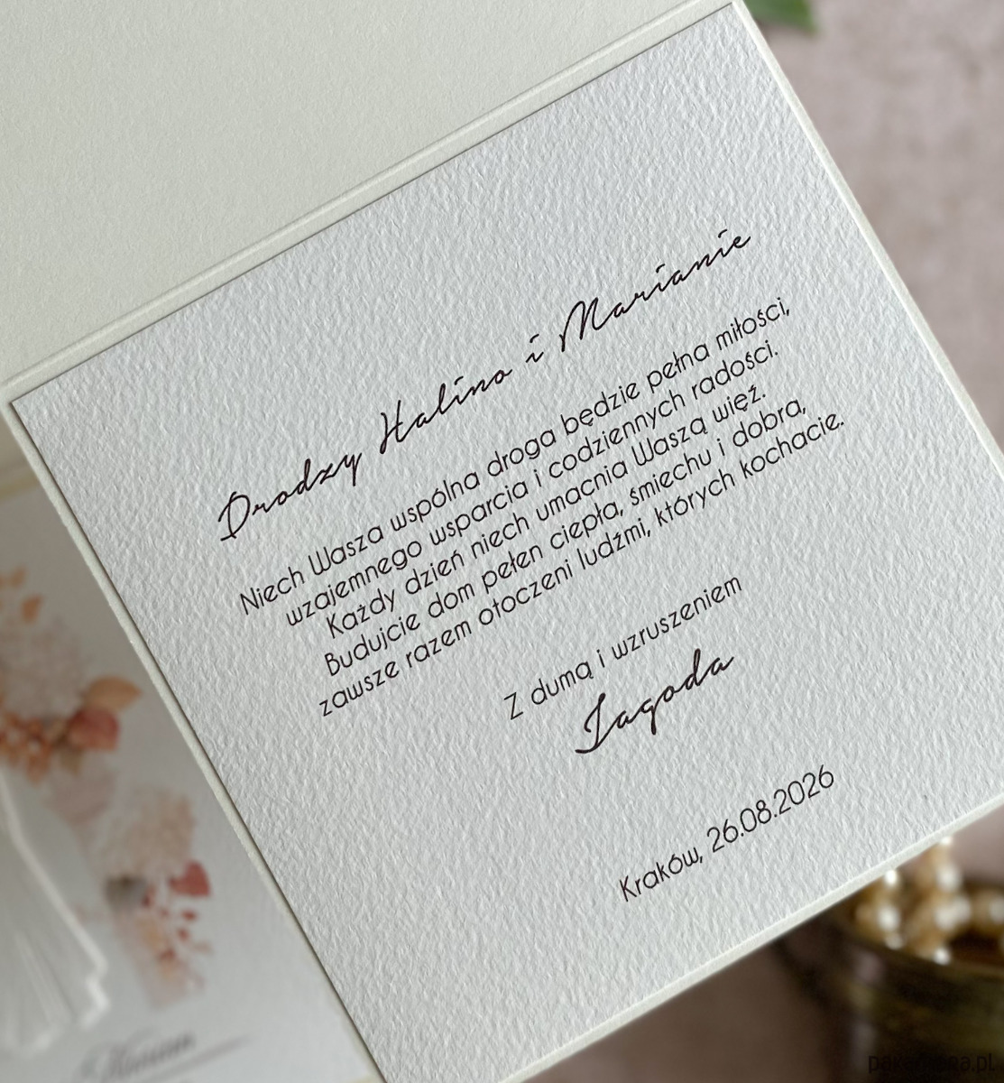 Elegancka, ręcznie wykonana kartka z okazji ślubu w ozdobnej kopercie z naszej autorskiej kolekcji WEDDING CHARM, linia PASTELLE.