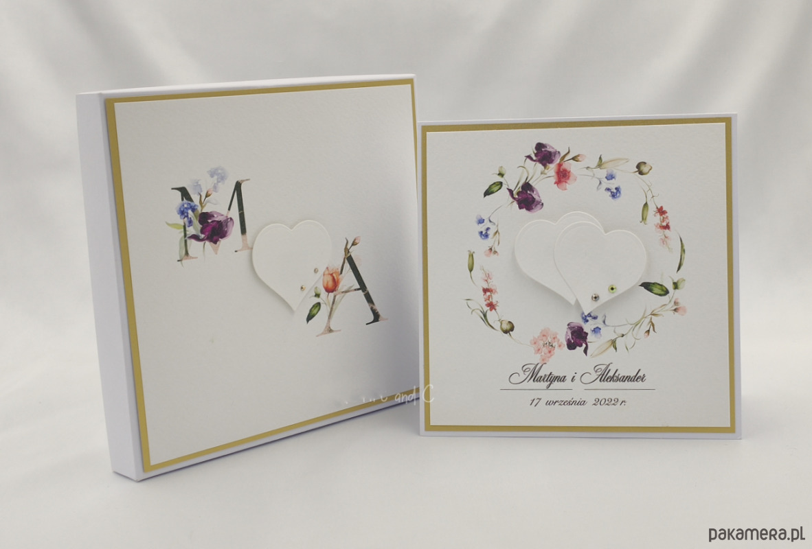 Elegancka, ręcznie wykonana kartka z okazji ślubu w pudełku z ozdobną kopertą na pieniądze, voucher podarunkowy lub drobny upominek.