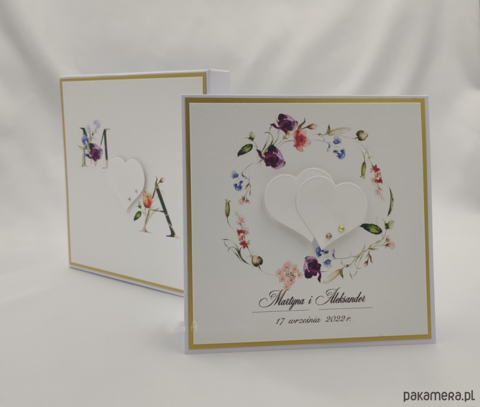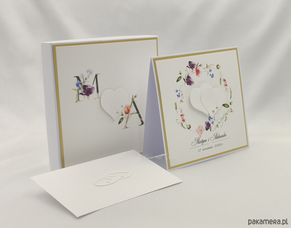 W środku kartki jest miejsce na personalne życzenia dla młodej pary.