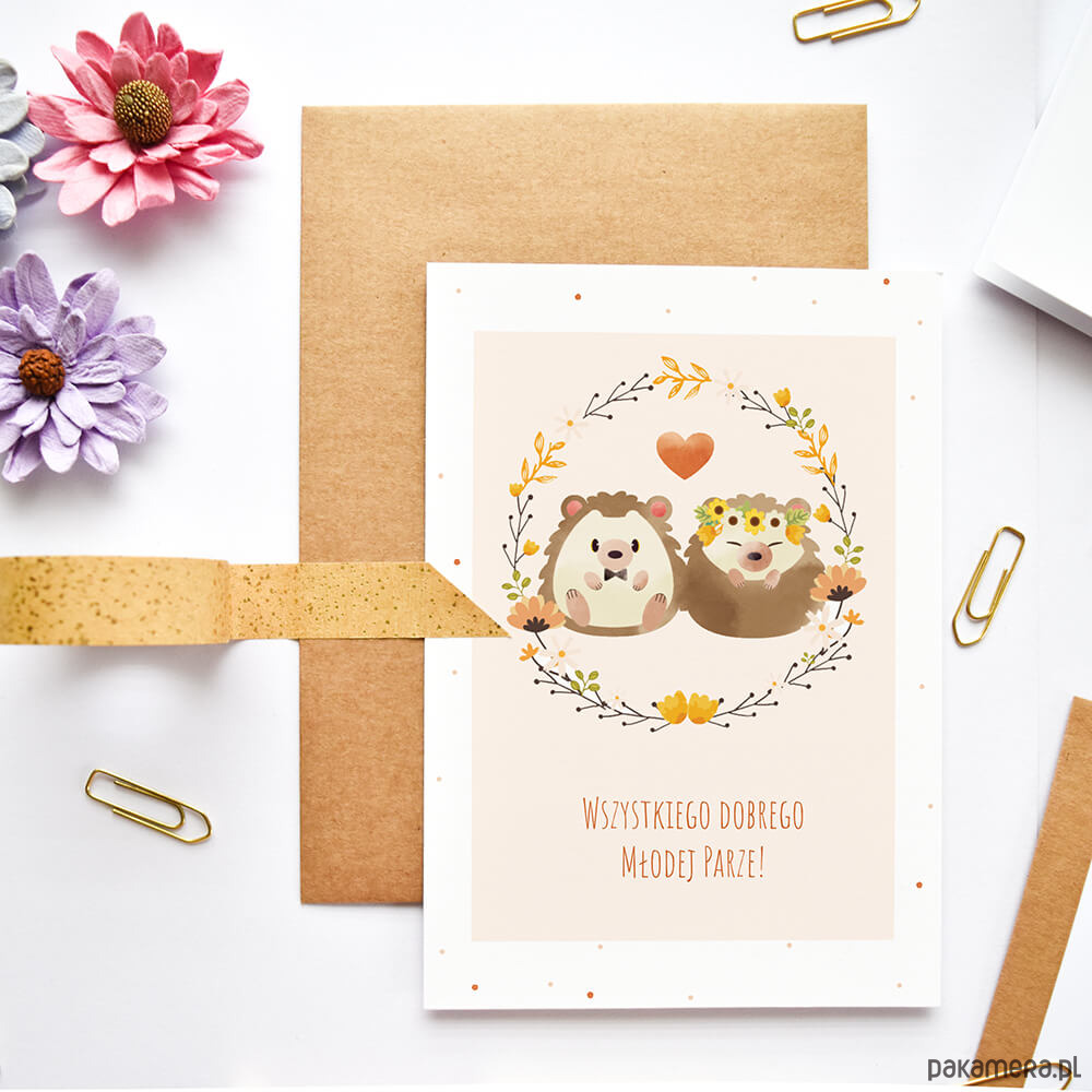 Kartka ślubna z jeżykami - Młoda Para od Cardie to idealny dodatek do bukietu, prezentu albo… samodzielny gest, który mówi więcej niż tysiąc słów.