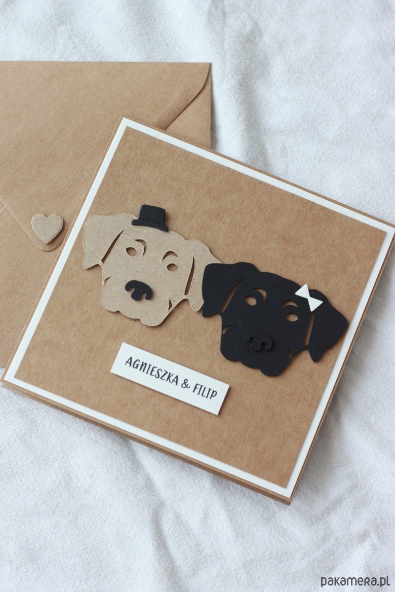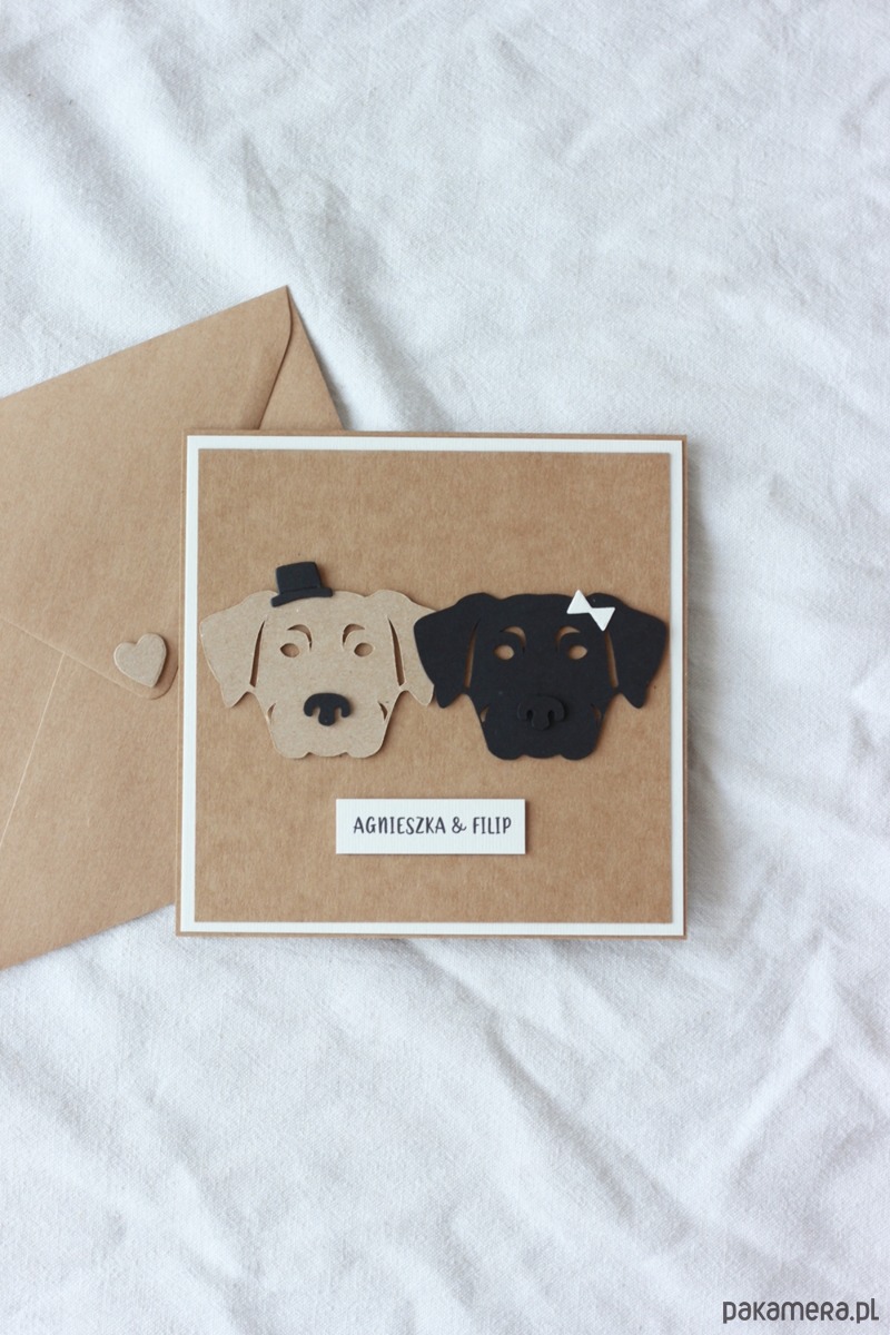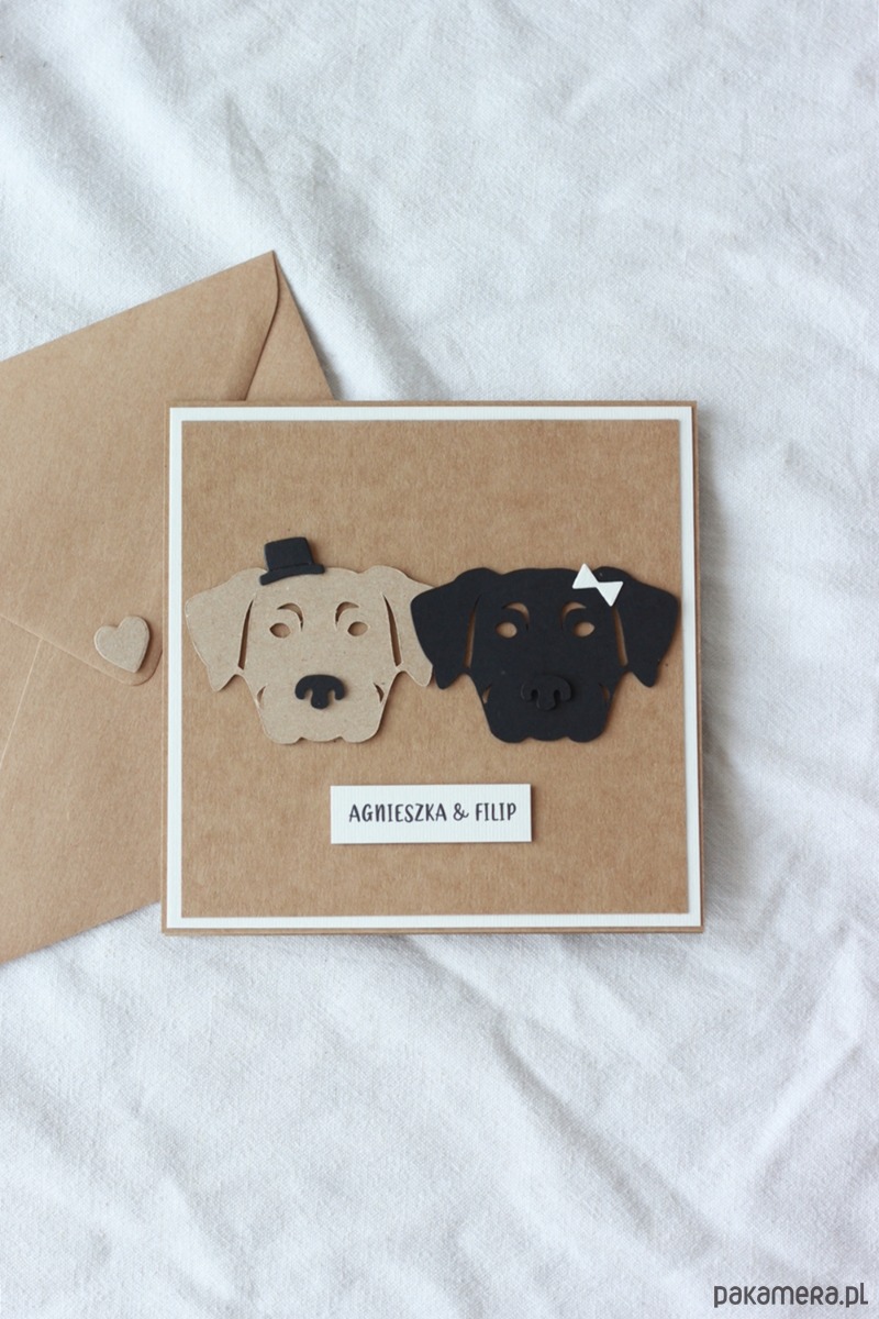 Kartka ślubna z parą zakochanych labradorów. Idealny upominek dla wszystkich psiarzy.