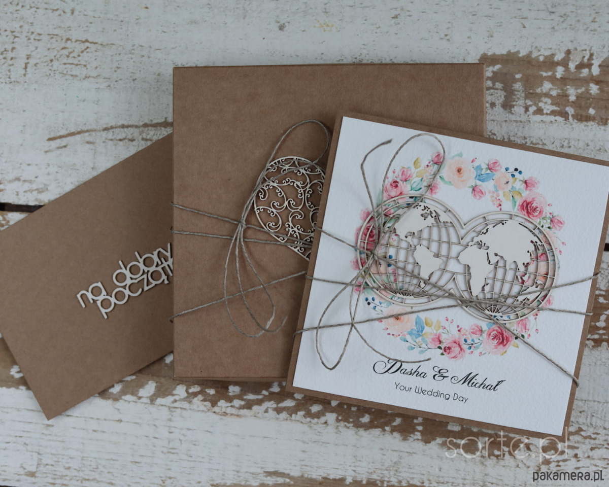 Kartka ślubna z personalizacją dla podróżników - Kartka ślubna, koperta na pieniądze ręcznie robiona
