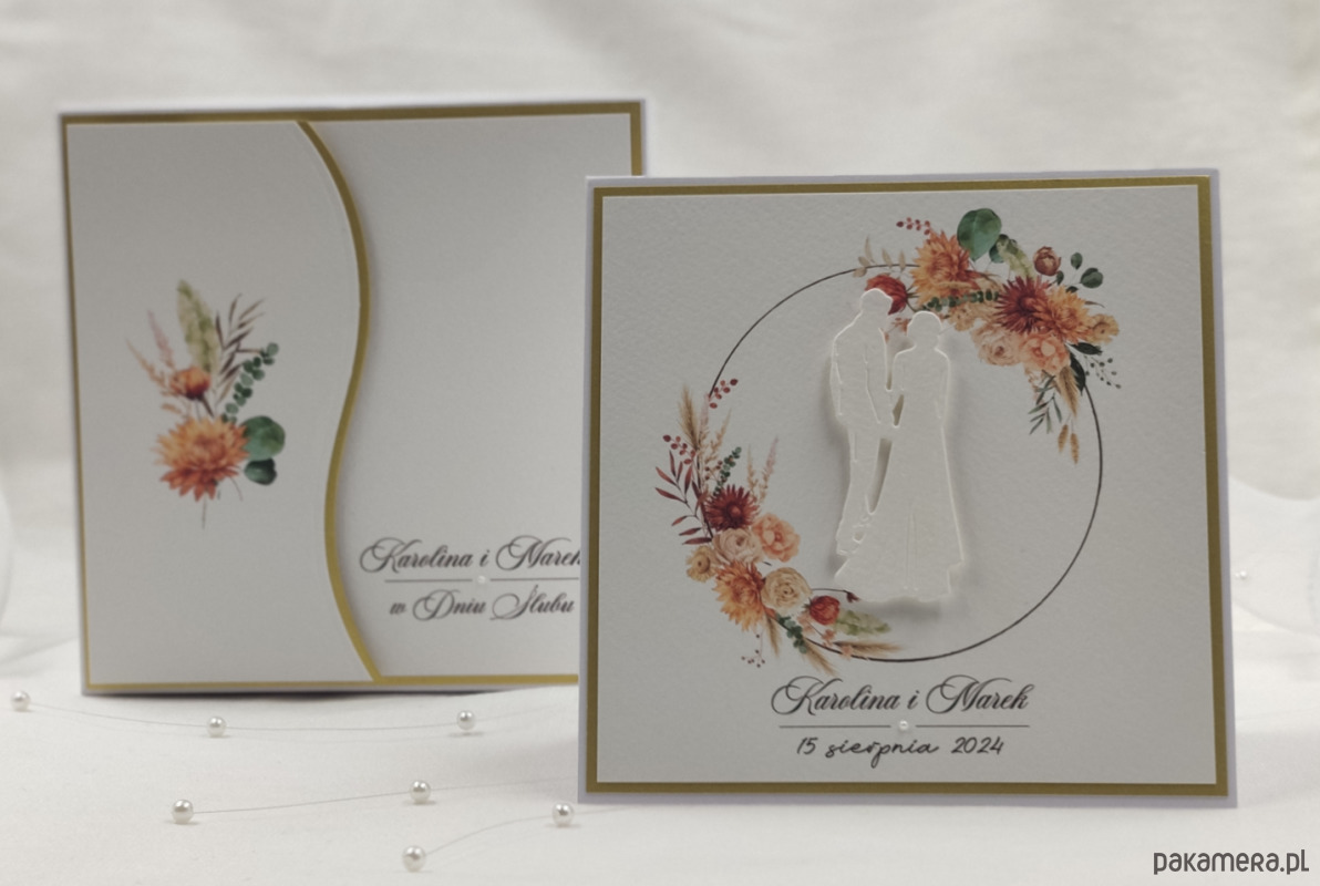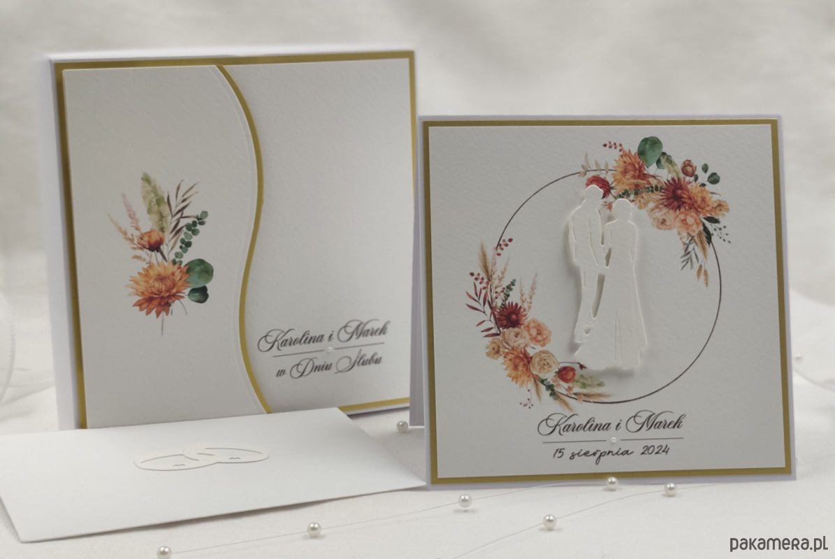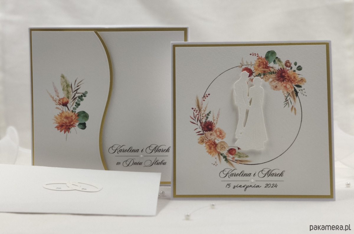 To zestawienie wyjątkowego, włoskiego papieru w odcieniu delikatnej, śmietankowej bieli oraz wykończeń w odcieniu matowego złota. Ozdobionych ręcznie wyciętymi elemenami z dodatkiem alabastrowych perełek lub delikatnych cyrkonii.