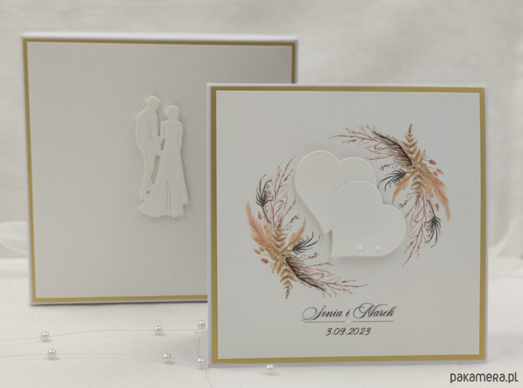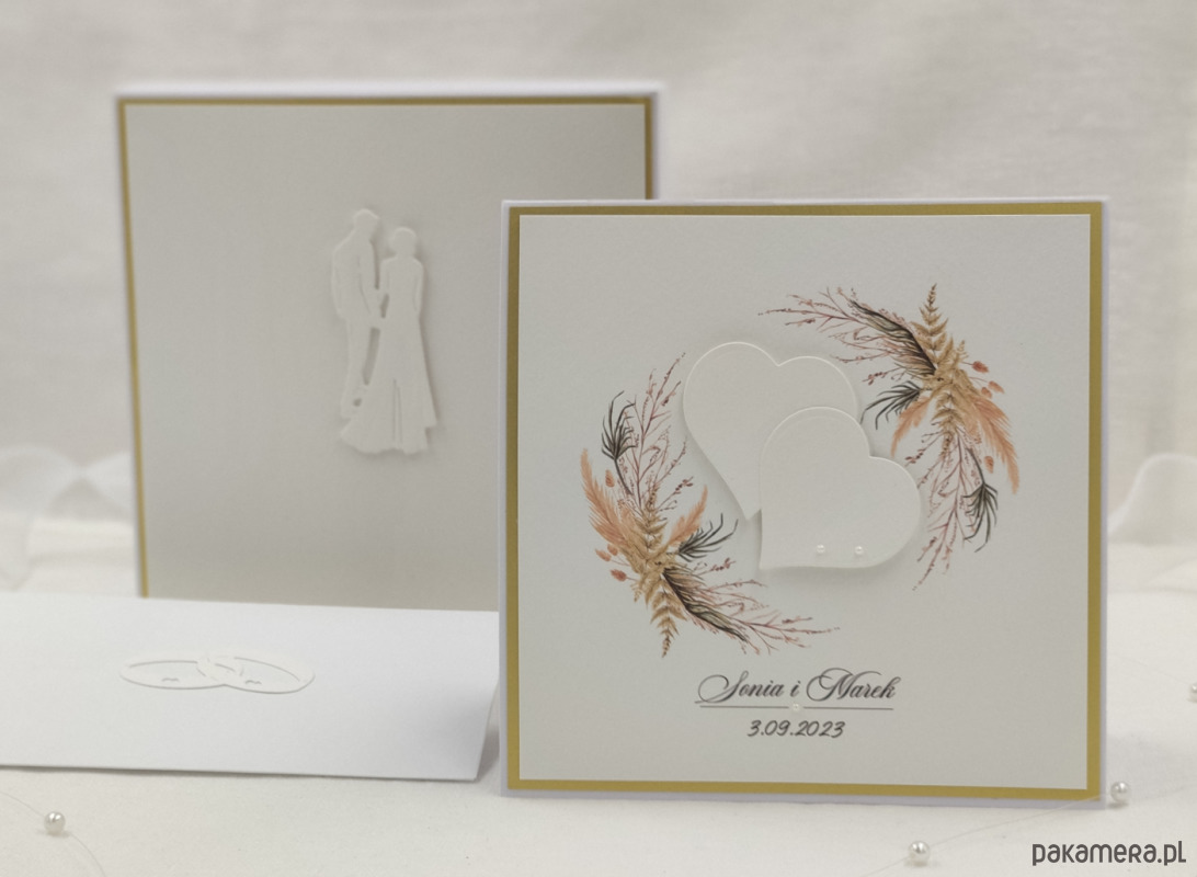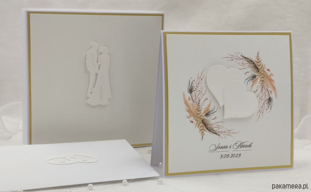 To zestawienie wyjątkowego, włoskiego papieru w odcieniu delikatnej, śmietankowej bieli oraz wykończeń w odcieniu matowego złota. Ozdobionych ręcznie wyciętymi elemenami z dodatkiem alabastrowych perełek lub delikatnych cyrkonii.