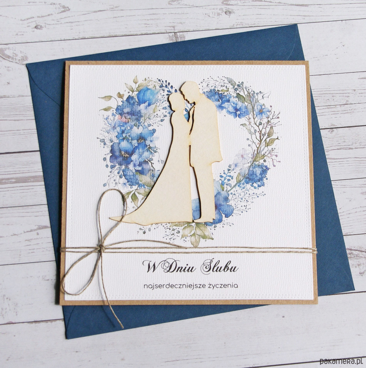 Kartka ślubna z życzeniami : niebieska I