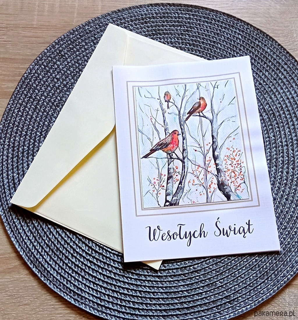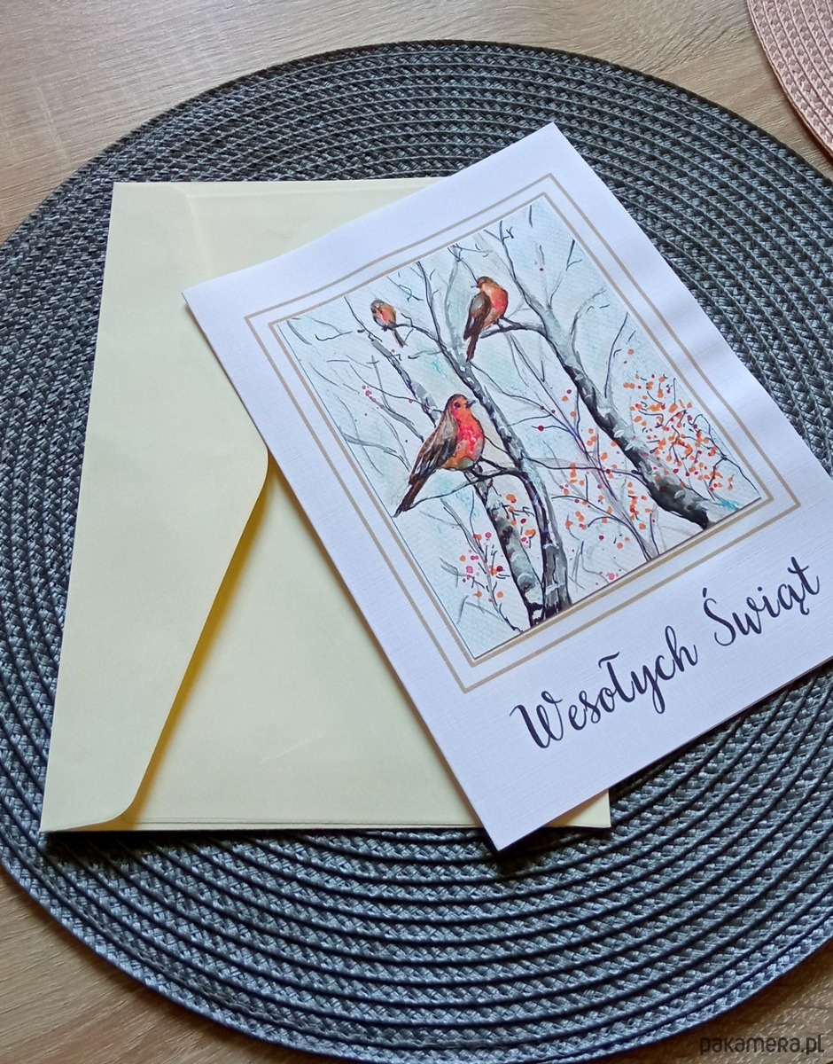 Kartka świąteczna z kopertą w kolorze jasnego beżu.