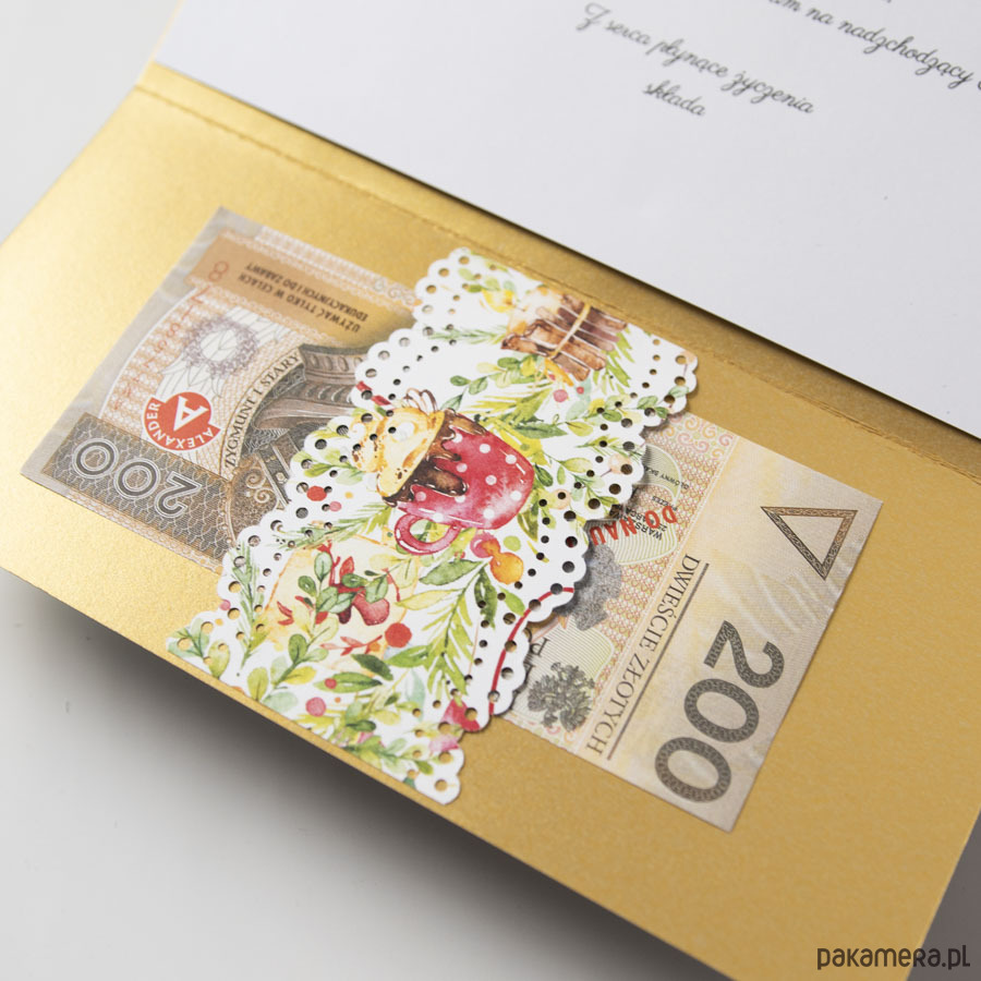 Taka kartka będzie super pomysłem, jeśli chcesz podarować komuś bliskiemu pieniądze lub bon upominkowy, kartę prezentową.