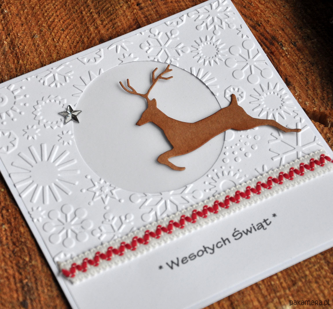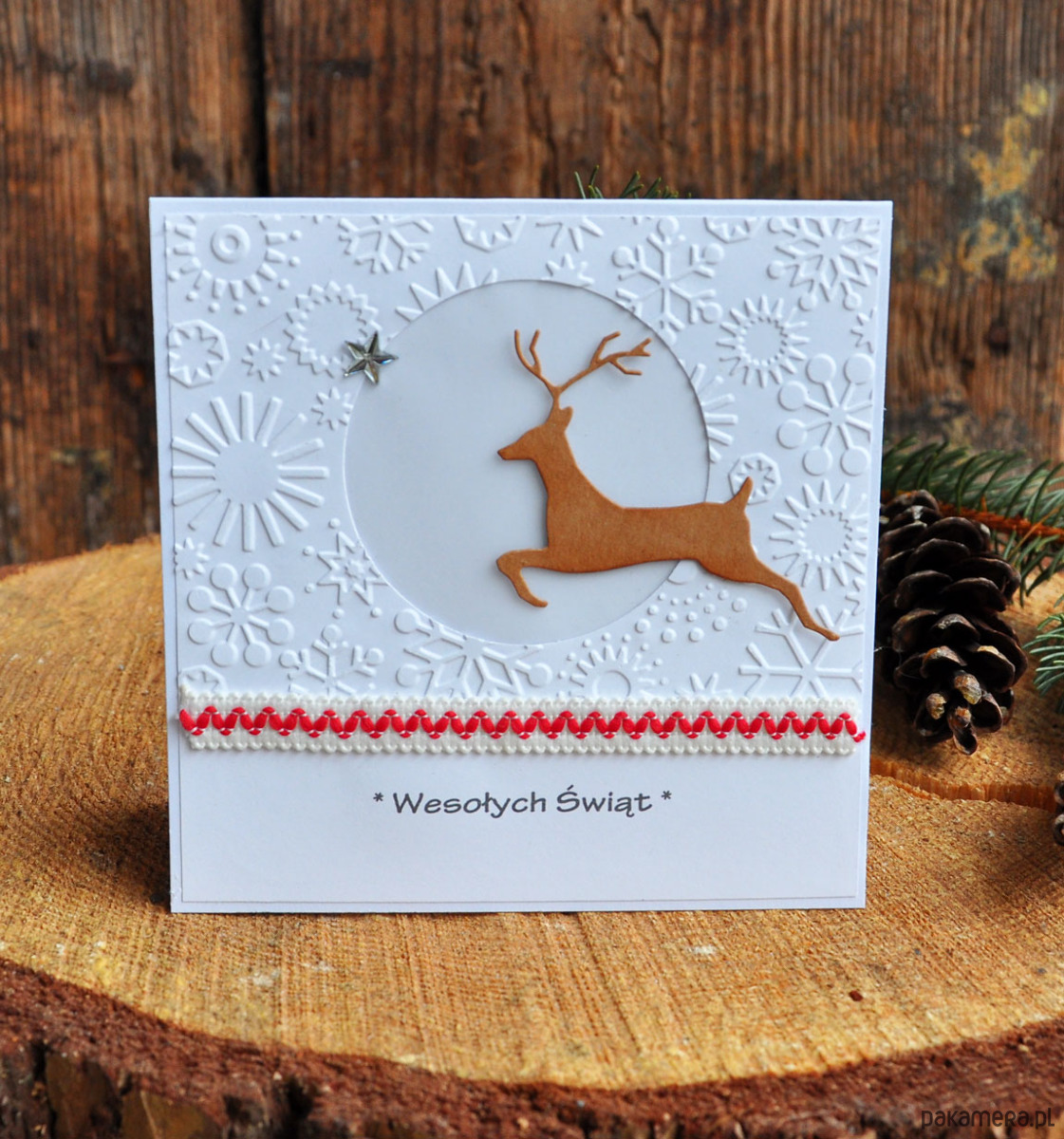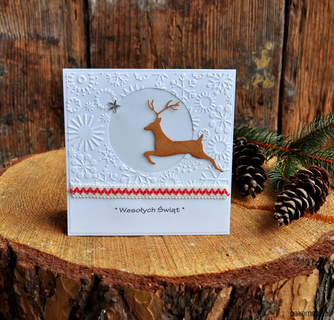Piękna i wyjątkowa kartka świąteczna z reniferem; wymiary kartki 13x3cm, w komplecie koperta; zapraszam
