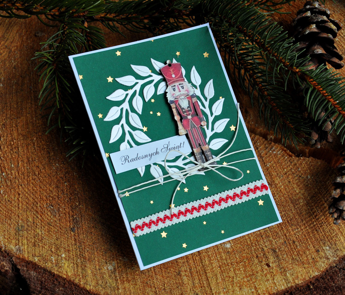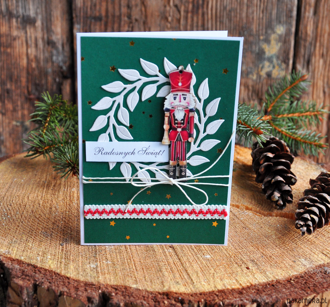 Piękna i wyjątkowa kartka świąteczna z dziadkiem do orzechów; wymiary kartki 10x15cm, w komplecie koperta; zapraszam