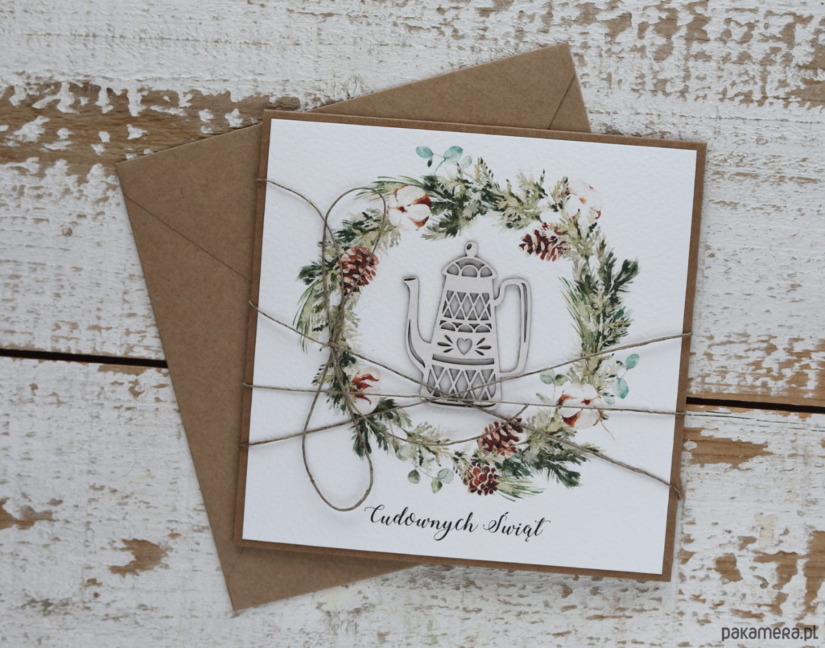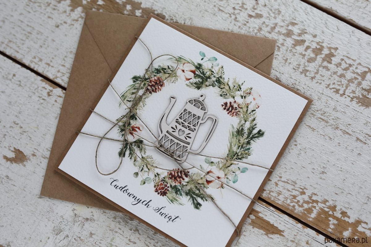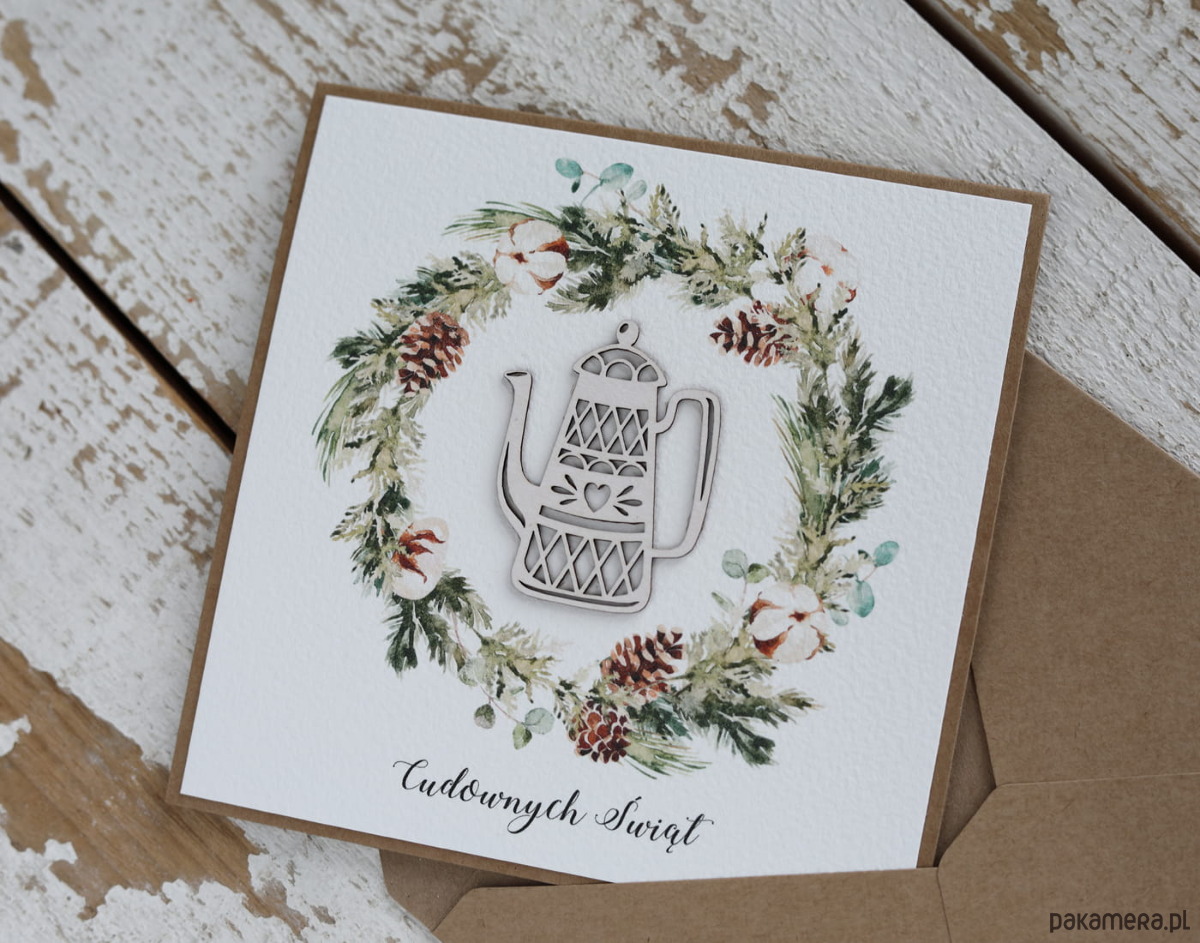 Kartka świąteczna ręcznie robiona na Boże Narodzenie imbryk