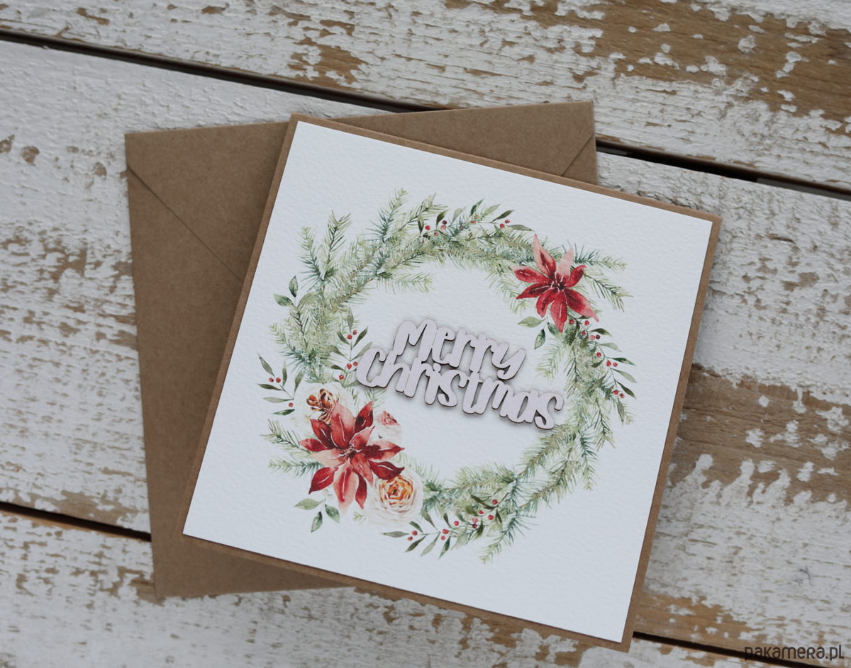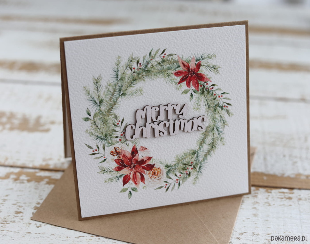 Kartka świąteczna ręcznie robiona na Boże Narodzenie Merry Christmas