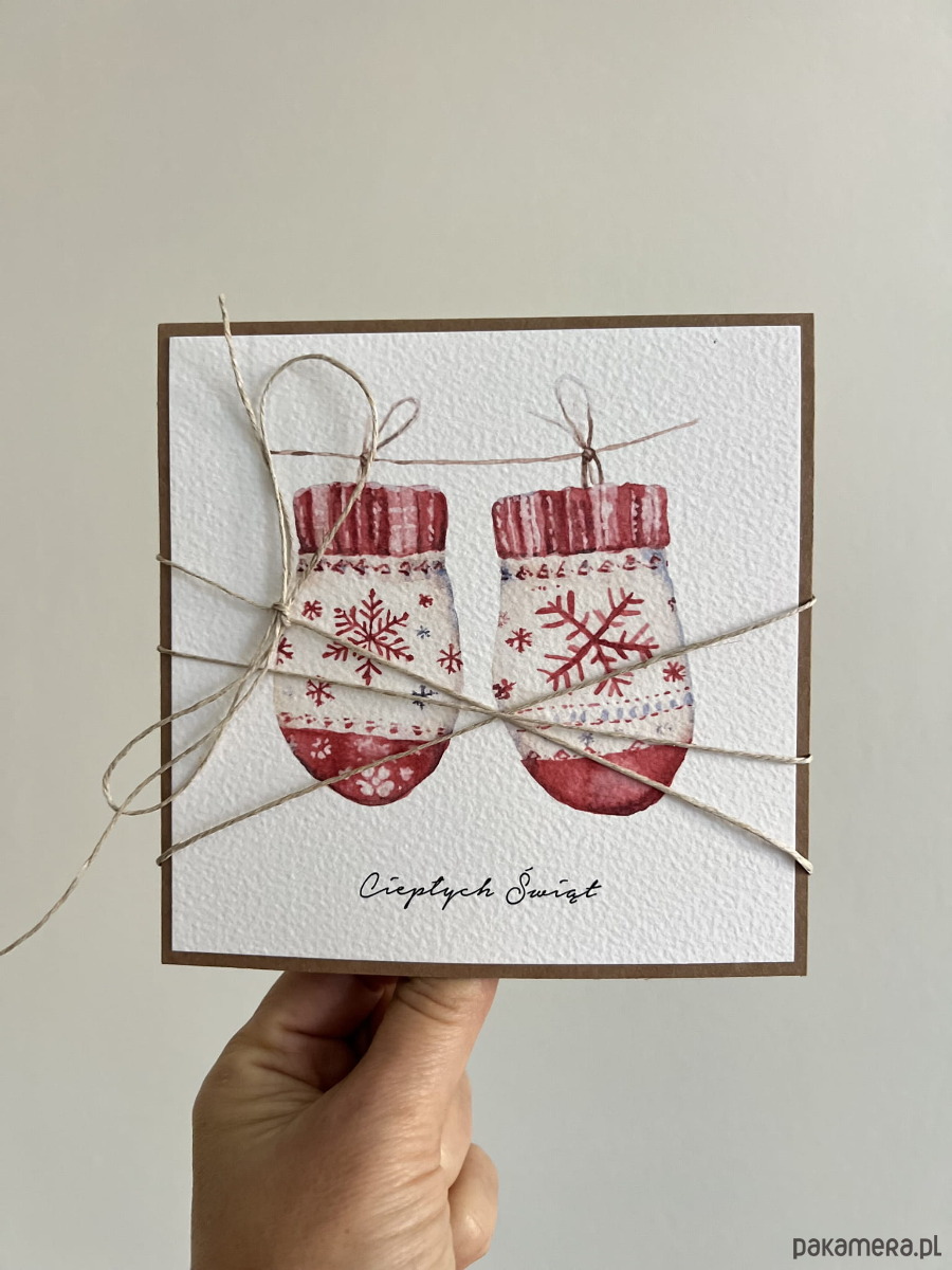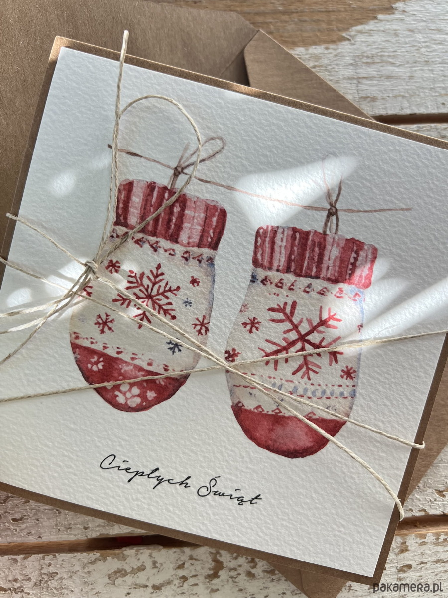 Kartka świąteczna ręcznie robiona na Boże Narodzenie - rękawiczki
