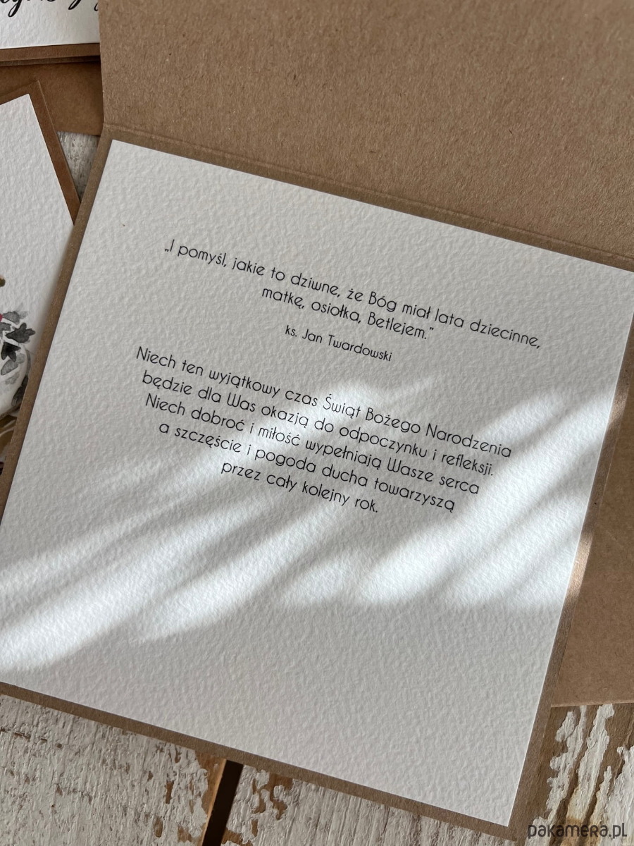 W środku kartka ma już gotowe życzenia widoczne na zdjęciu.