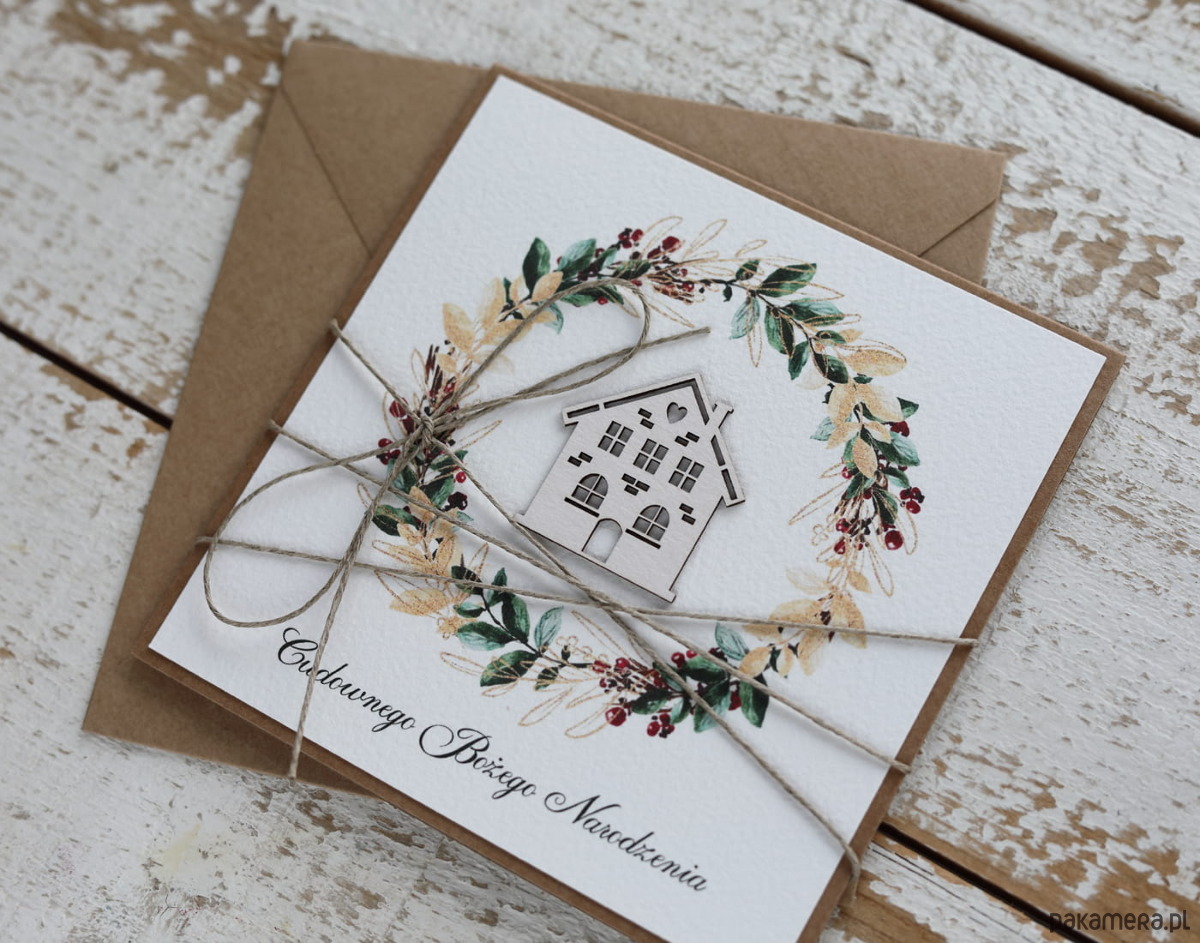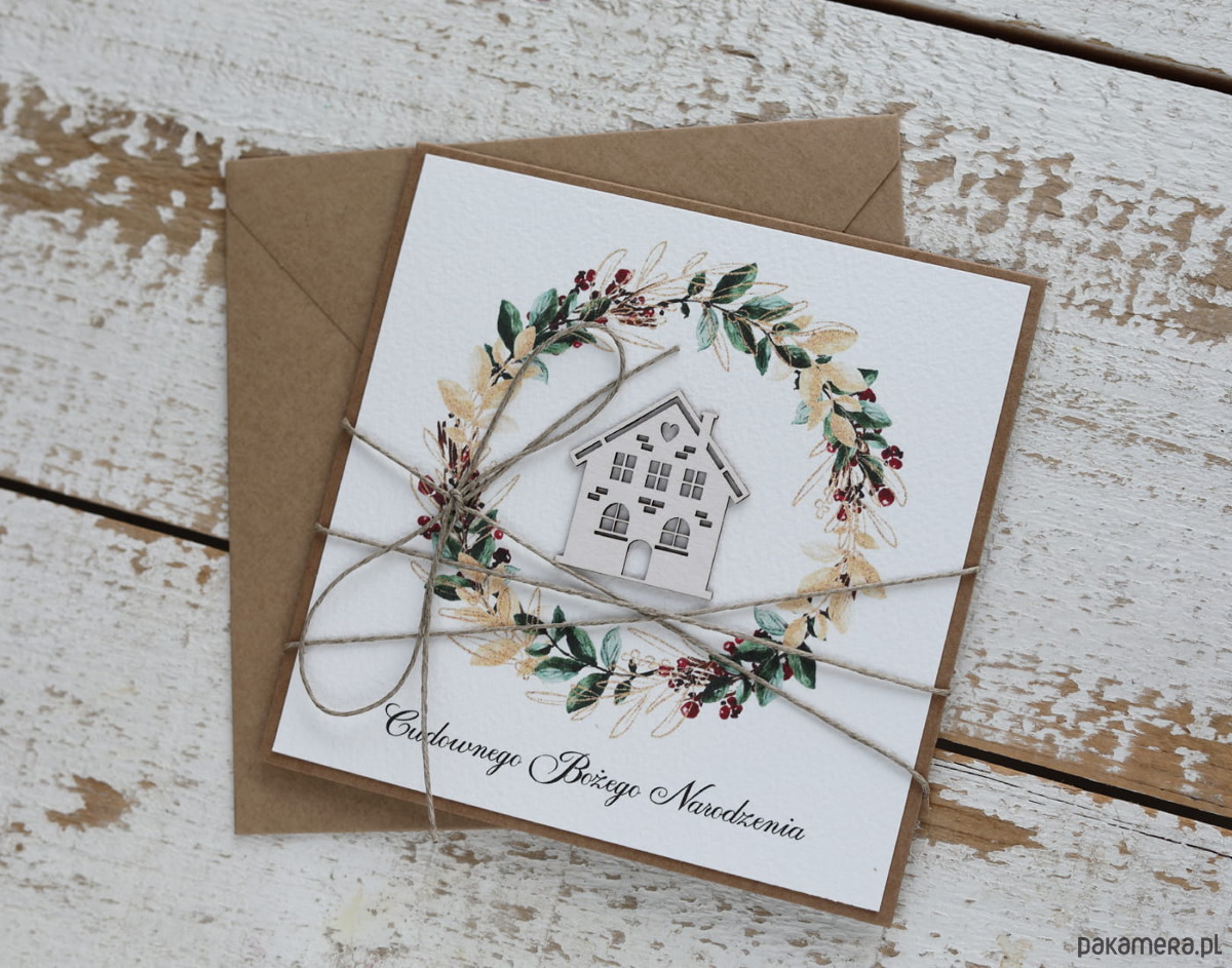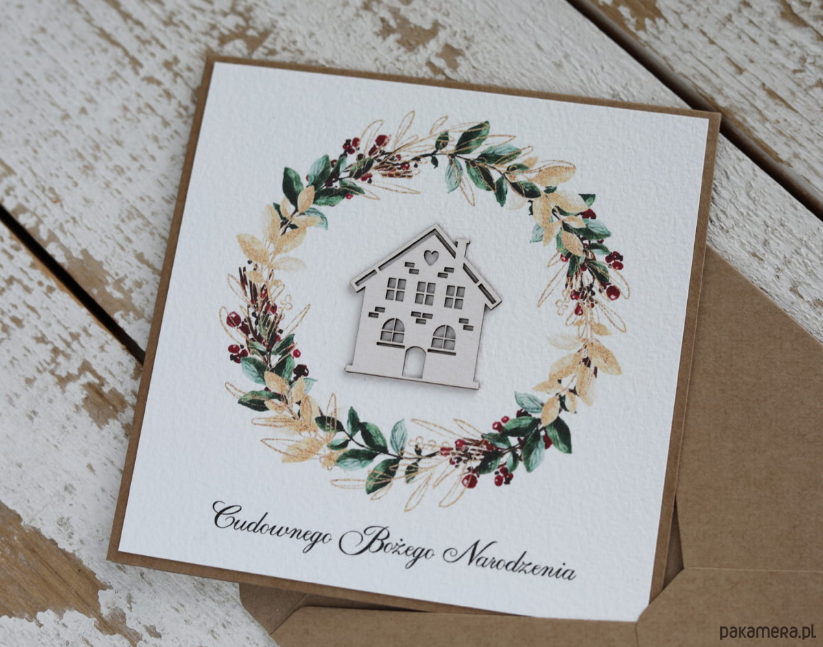Kartka świąteczna ręcznie robiona na Boże Narodzenie świąteczny dom życzenia