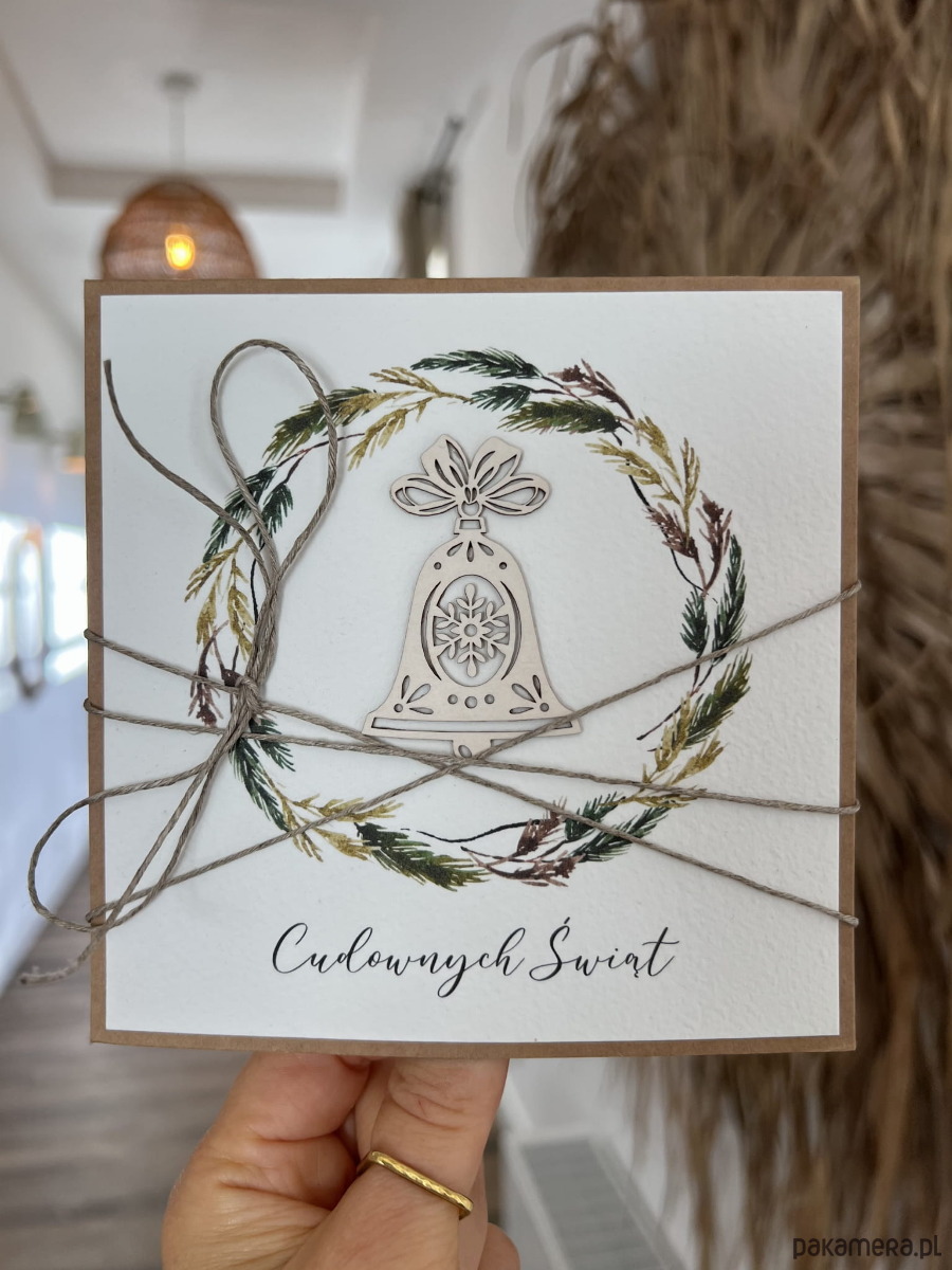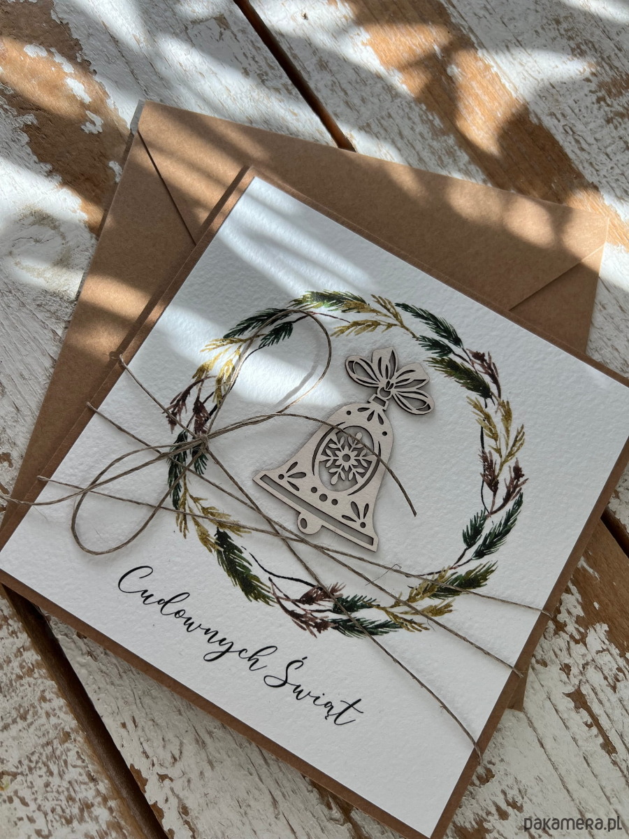 Kartka świąteczna ręcznie robiona na Boże Narodzenie świąteczny dzwonek
