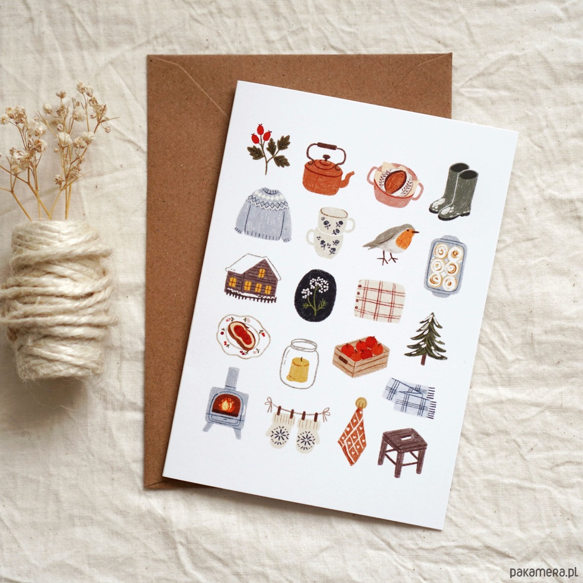 Kartka świąteczna pełna ciepła i przytulności, idealna na świąteczny czas 🎄