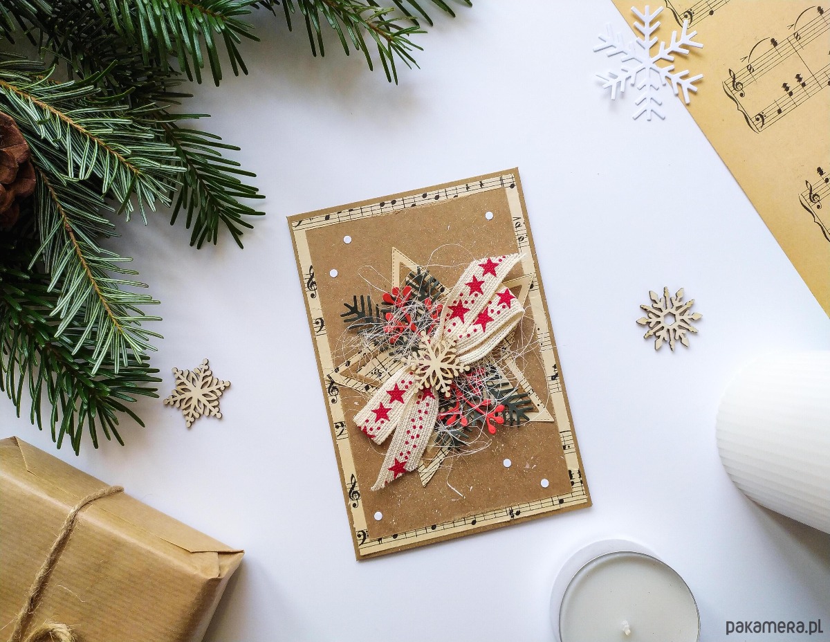 Wykonana ręcznie świąteczna kartka . W komplecie koperta i ochronna folia. Wymiary 10,5 na 14,8 cm.