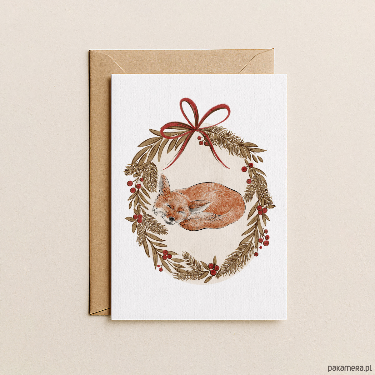 Kartka świąteczna z liskiem