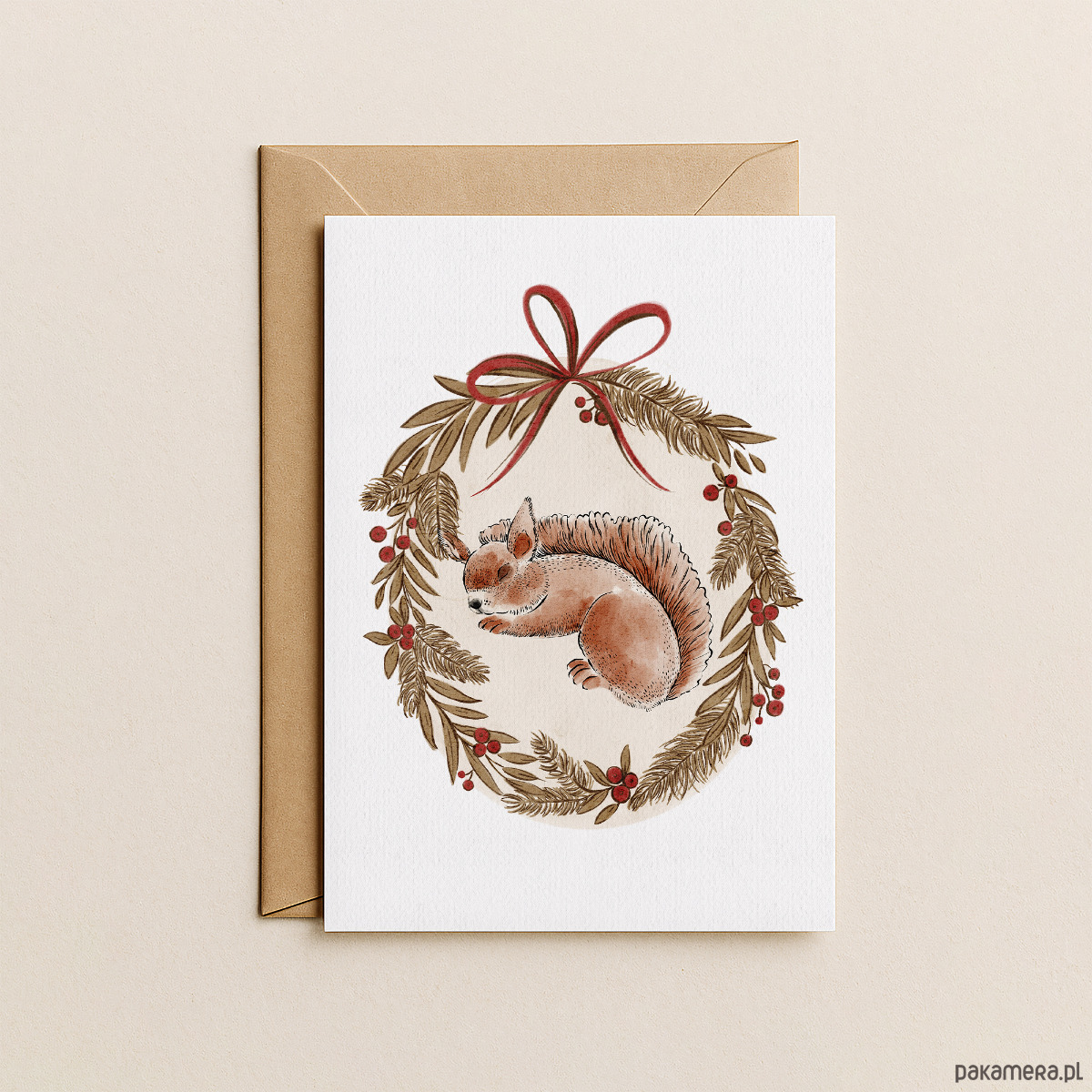 Kartka świąteczna z wiewiórką