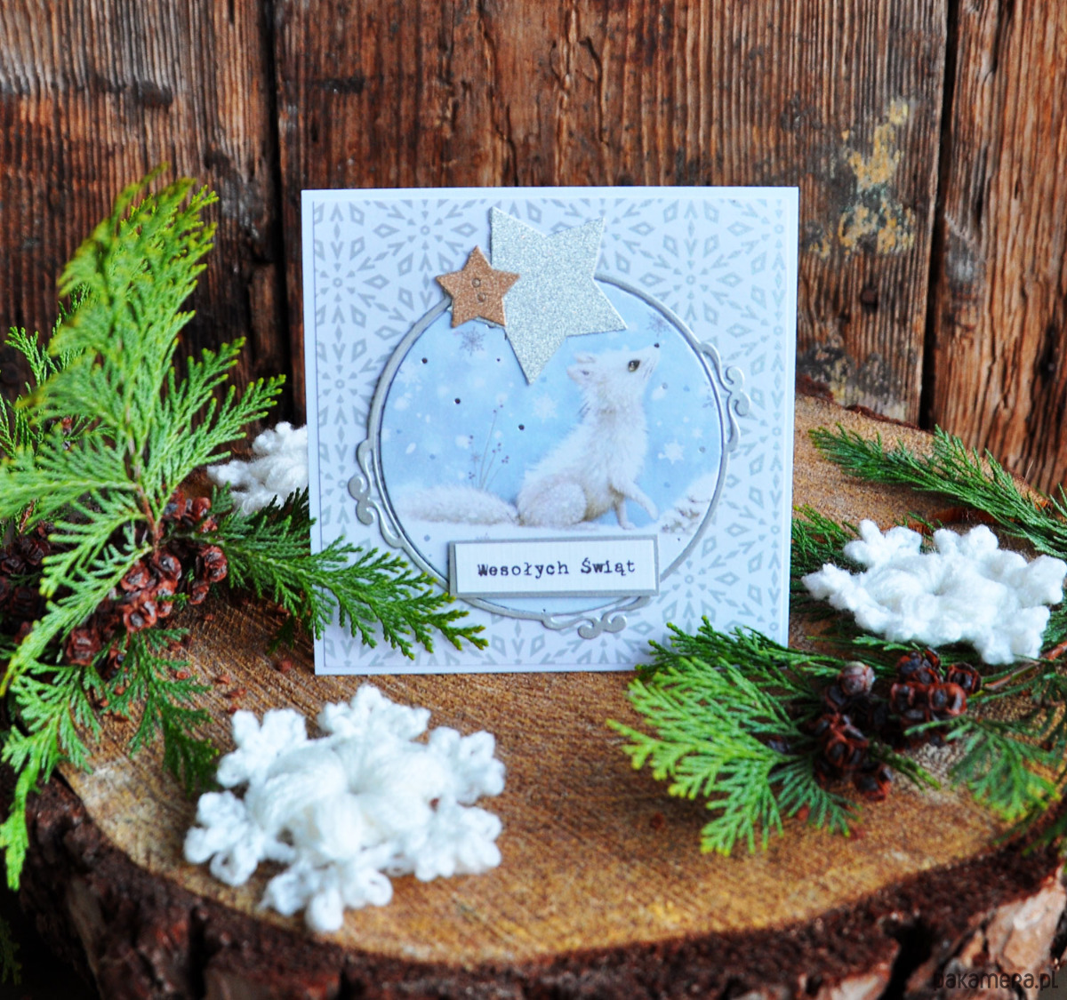 Piękna i wyjątkowa kartka świąteczna "Zimowy las"; wykonan z papierów z połyskiem i brokatem, pięknie się błyszczy; wymiary kartki 13x13cm, w komplecie koperta; zapraszam