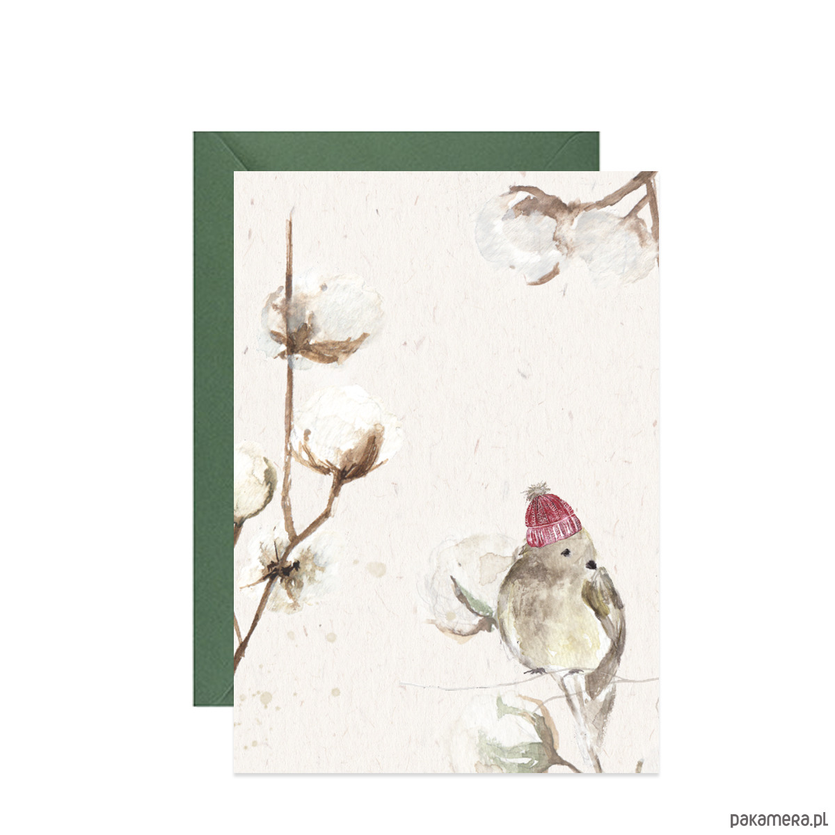 Kartka świąteczna Zimowy wróbel w bawełnie