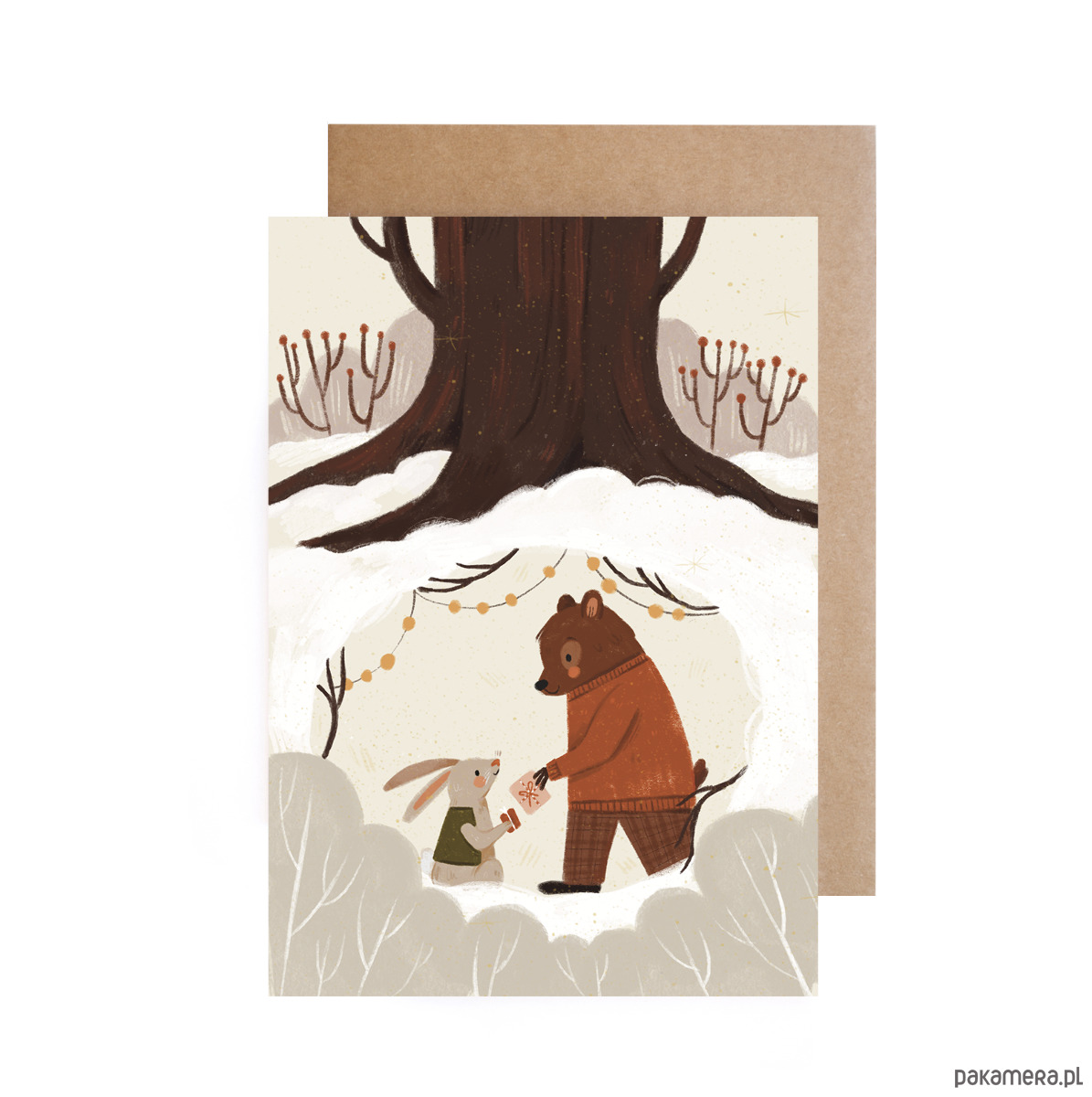 Kartka jest sprzedawana razem z ekologiczną kopertą, pusta w środku. Rozmiar to ok. 10,5x14,8 cm lub 12x17 cm. Zaprojektowane i wydrukowane w Polsce.