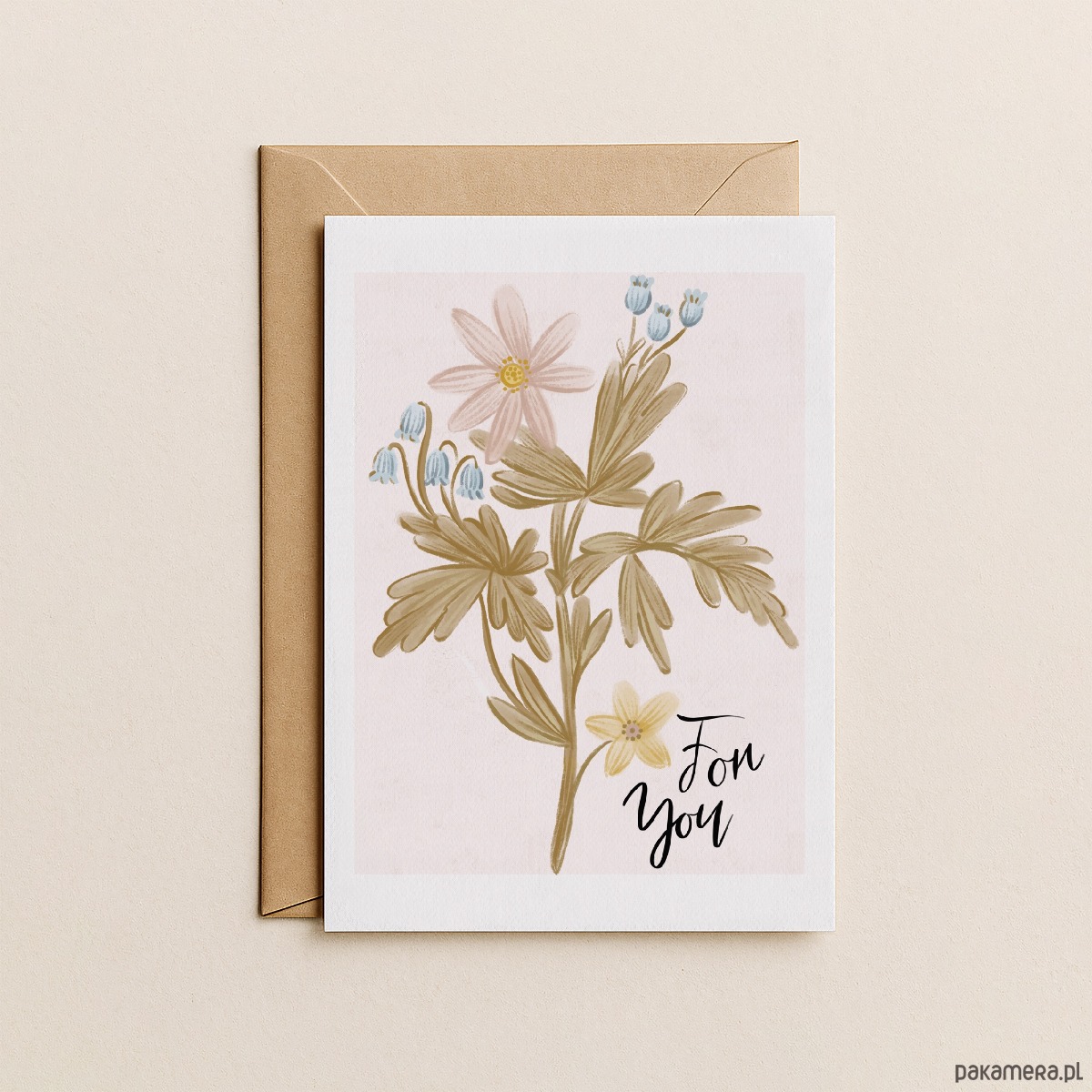 Kartka zawiera autorską ilustrację kwiatową w pastelowych kolorach.