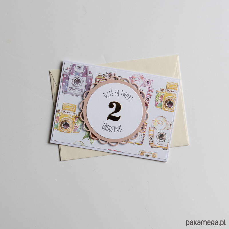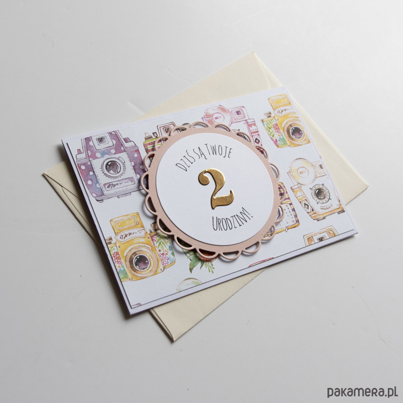 Ręcznie robiona kartka urodzinowa w komplecie z dopasowaną kopertą.