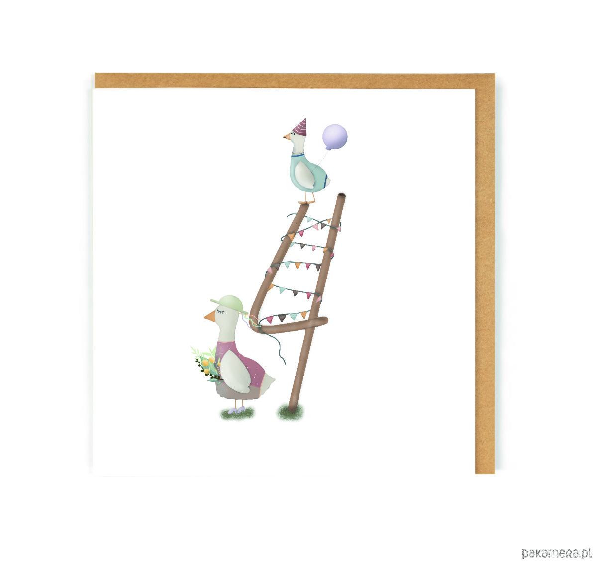 Kartka okolicznościowa dla dziewczynki na czwarte urodzinki - gąski.