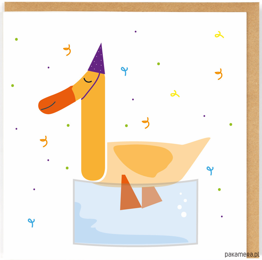 Kartka okolicznościowa dla dziewczynki i chłopca na pierwsze urodziny - kaczuszka.