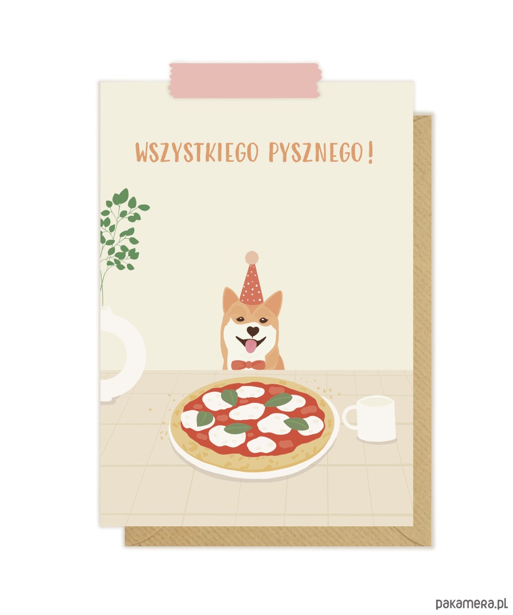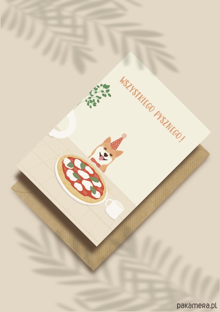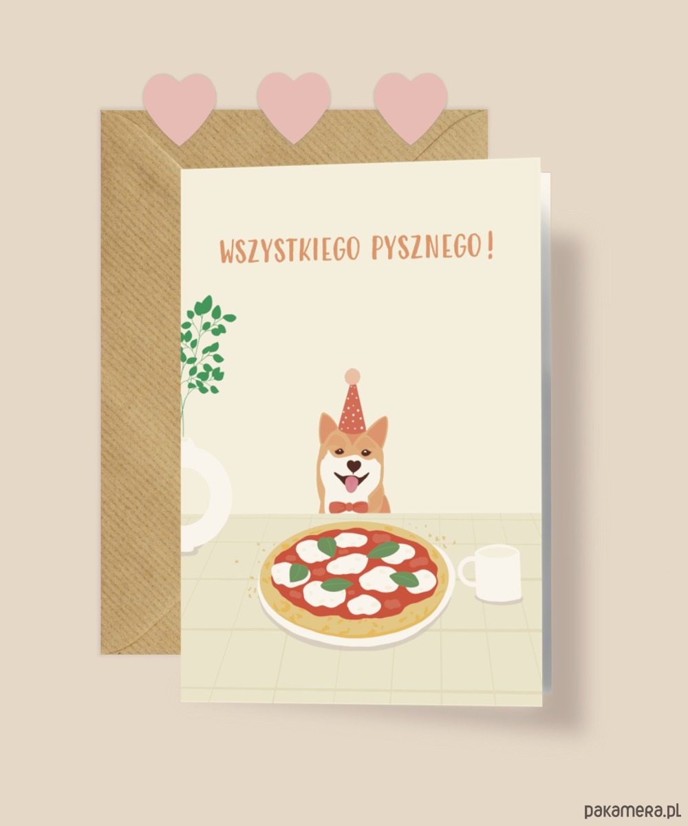 Kartka idealna dla fanów piesków i pizzy, na dowolną okazję jaką tylko potrzebujesz :)