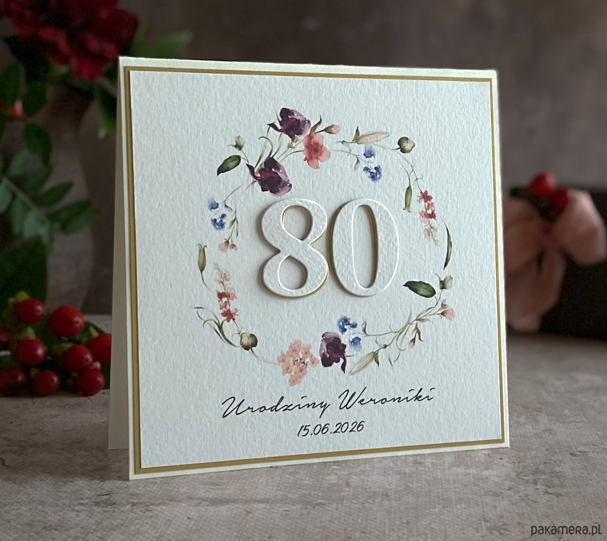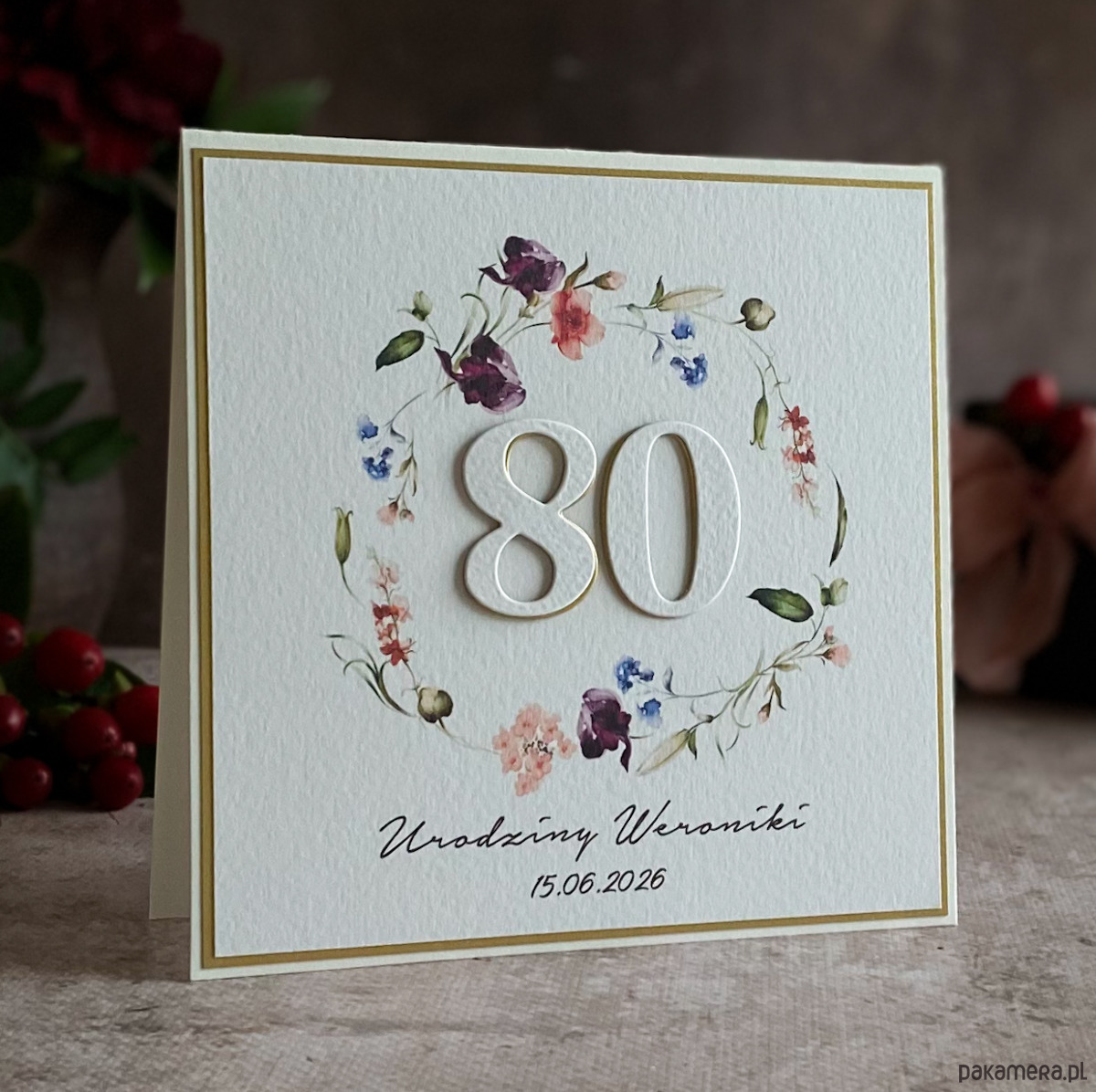 Elegancki, ręcznie wykonany, personalizowany zestaw prezentowy z okazji 80-tych urodzin.