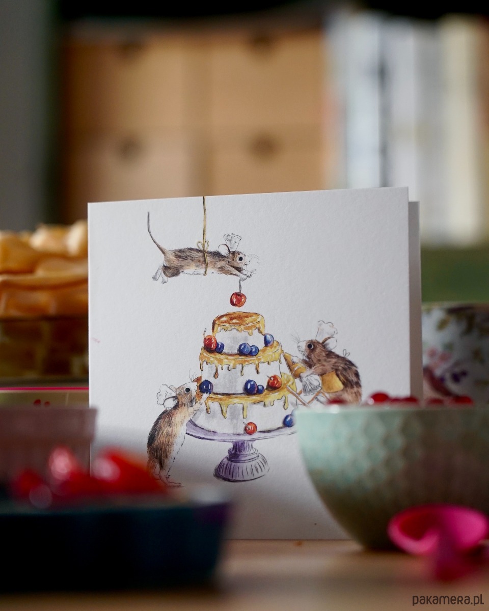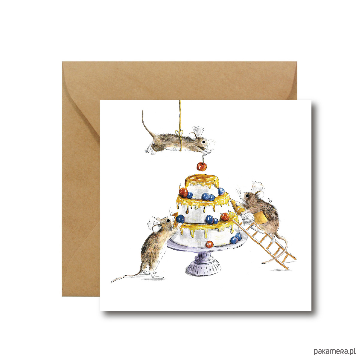 Kartka urodzinowa z kopertą - WISIENKA NA TORCIE