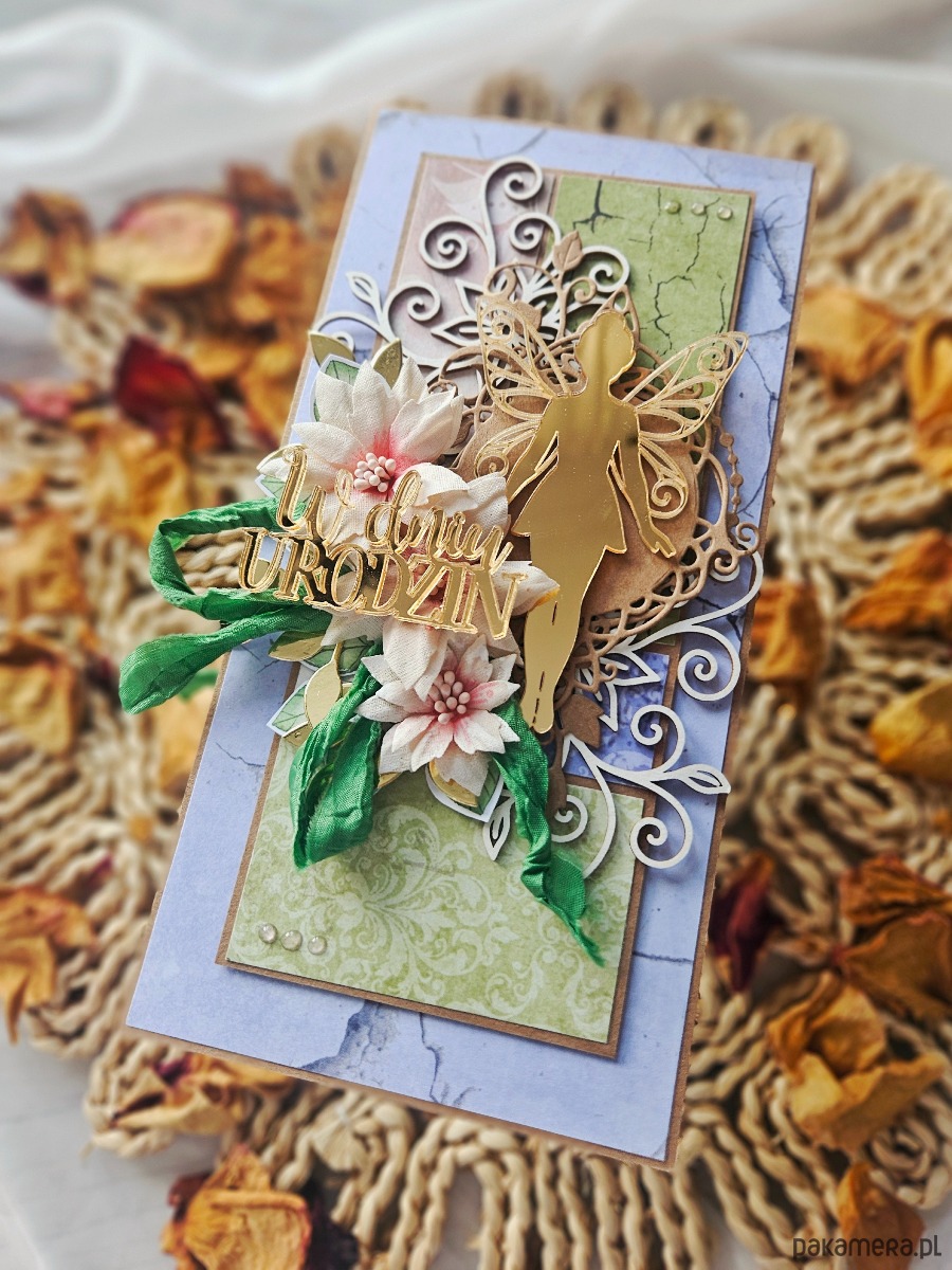 Kartka urodzinowa ze złotą wróżką