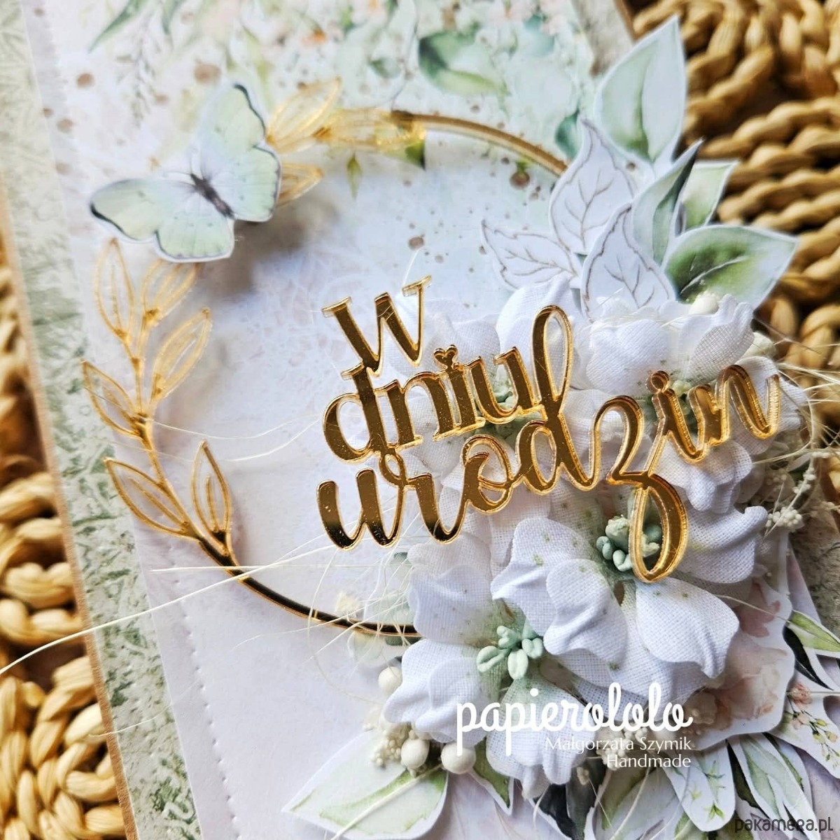 W środku miejsce na życzenia do samodzielnego uzupełnienia. Pieniądze można włożyć do pudełka pod kartkę lub do jej środka.