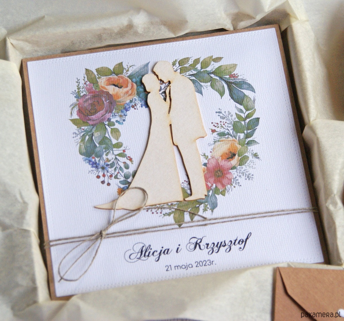 w pudełku znajduje się też mini-koperta (ozdobiona pasującym motywem roślinnym) przeznaczona na upominek pieniężny.