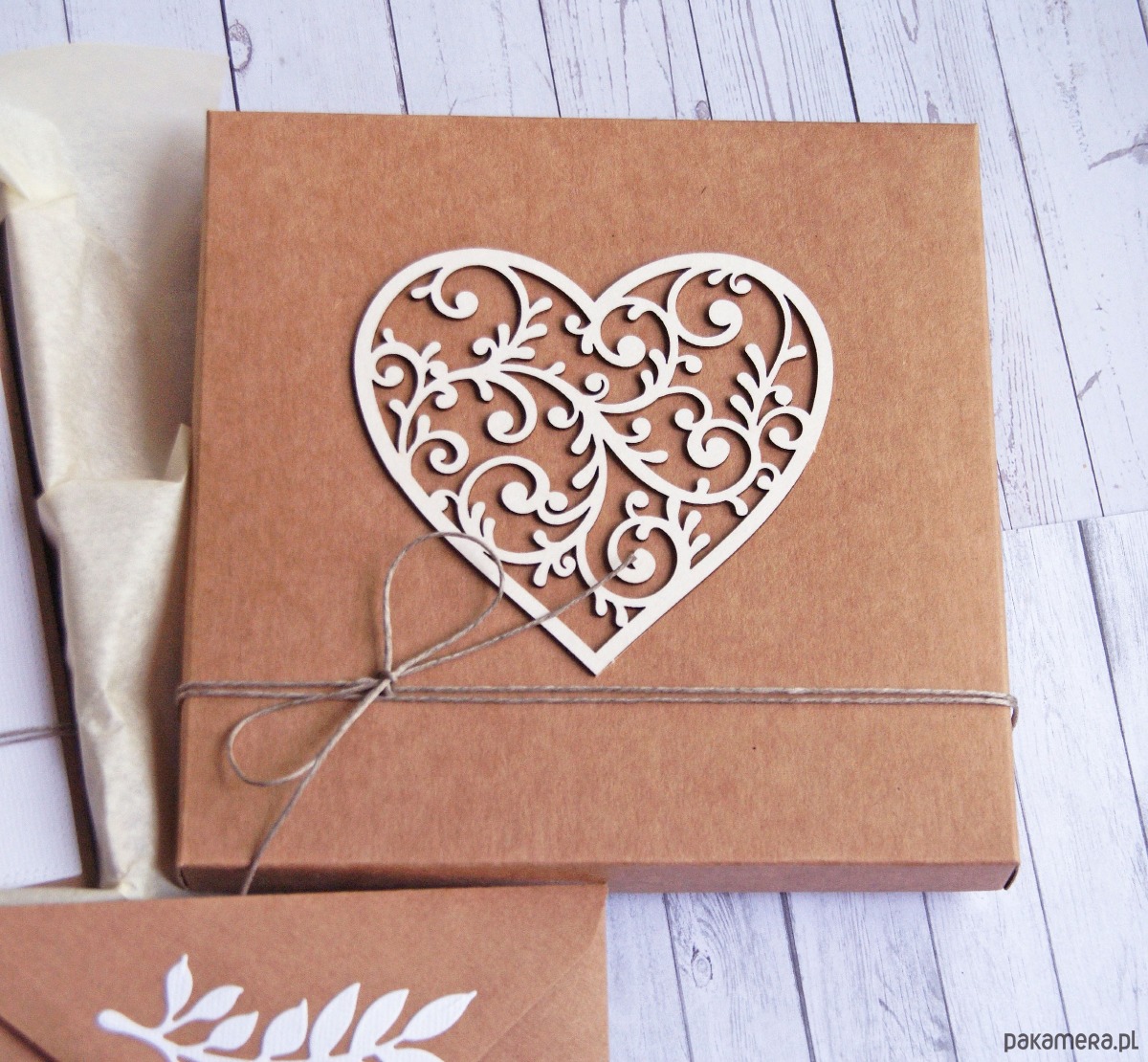 kartka znajduje się w pudełku (wyściełanym bibułą) z ażurowym sercem z beermaty.