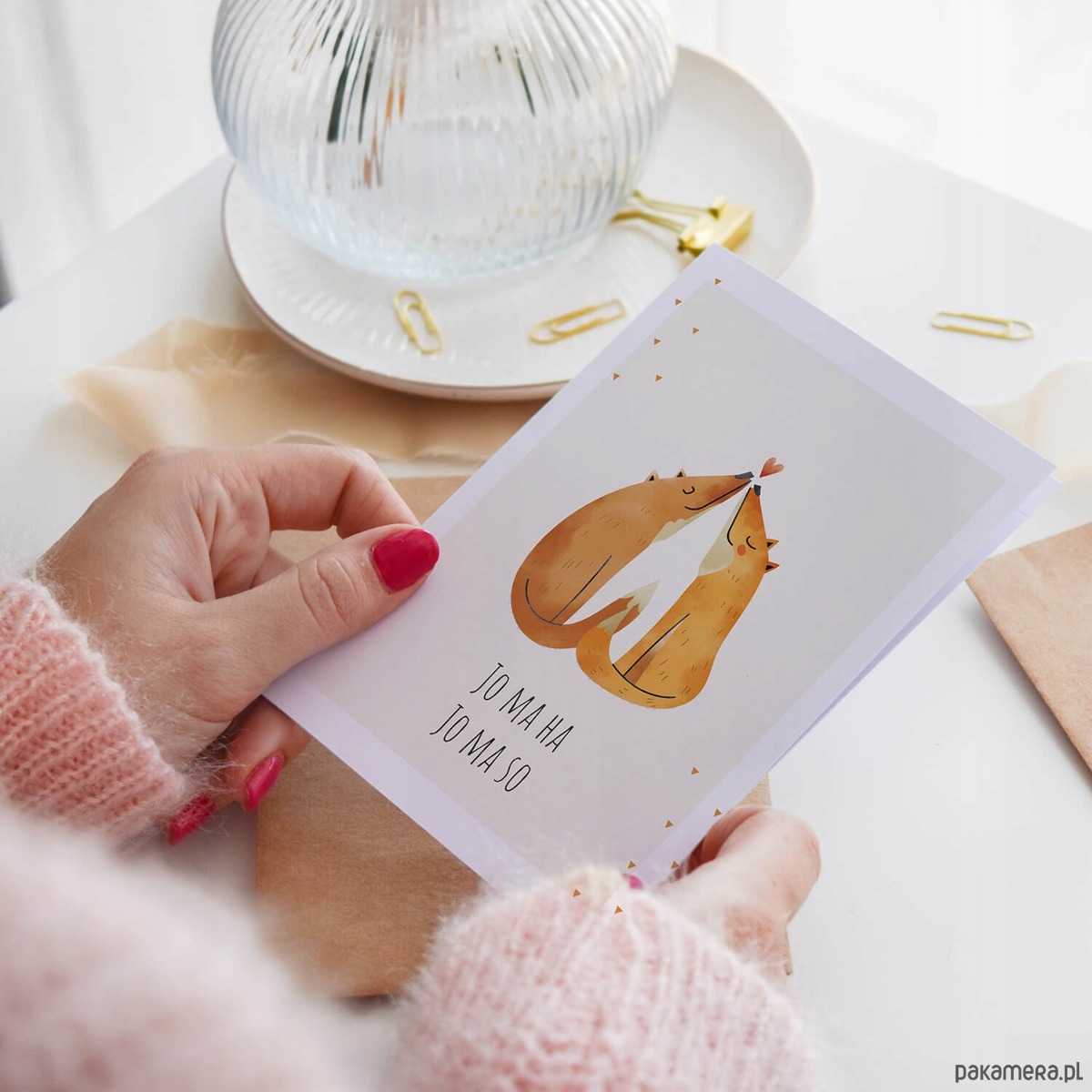Kartka walentynkowa „Liski” z kopertą - prezent dla niej od Cardie to idealny dodatek do bukietu, prezentu albo… samodzielny gest, który mówi więcej niż tysiąc słów.